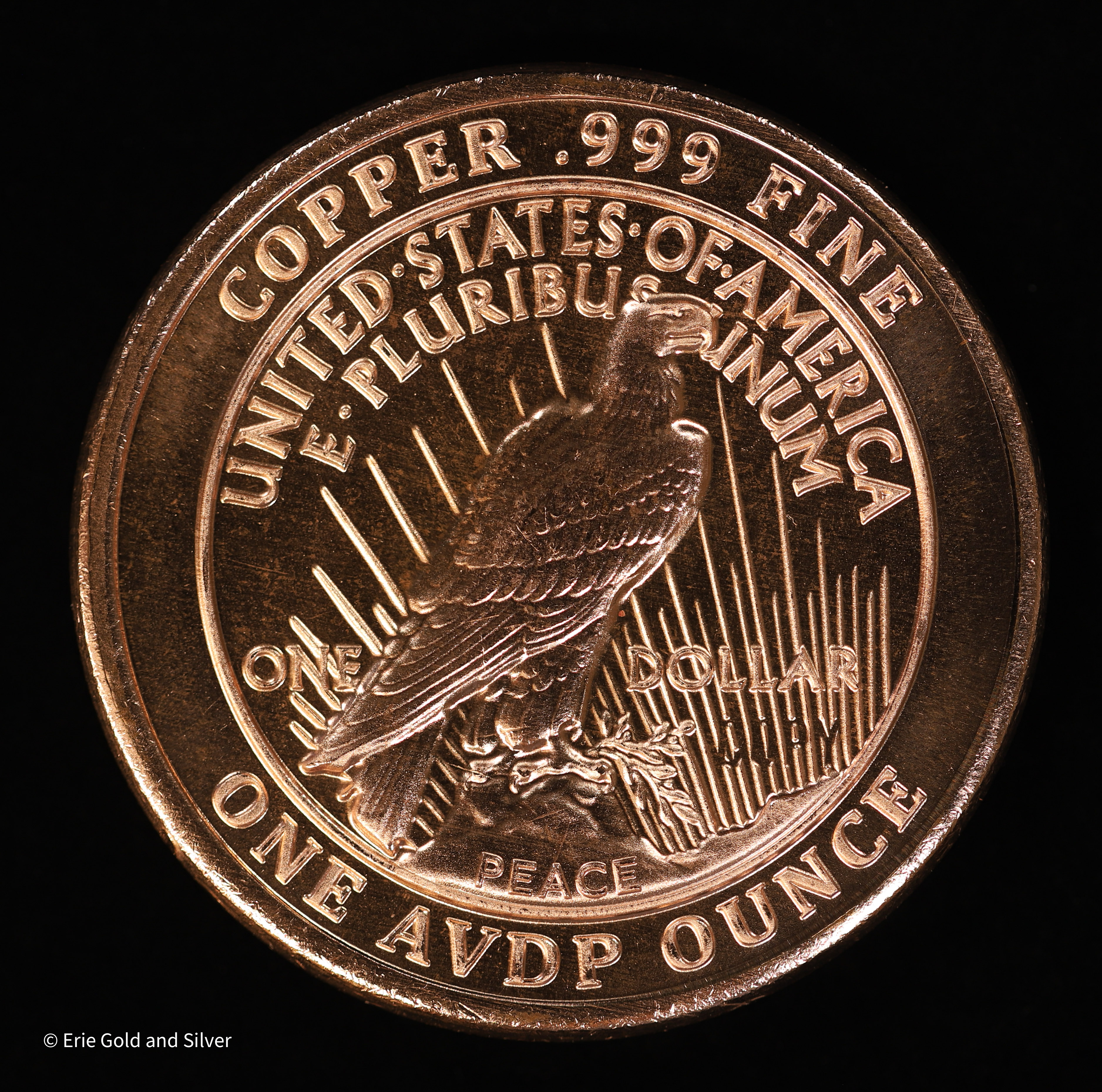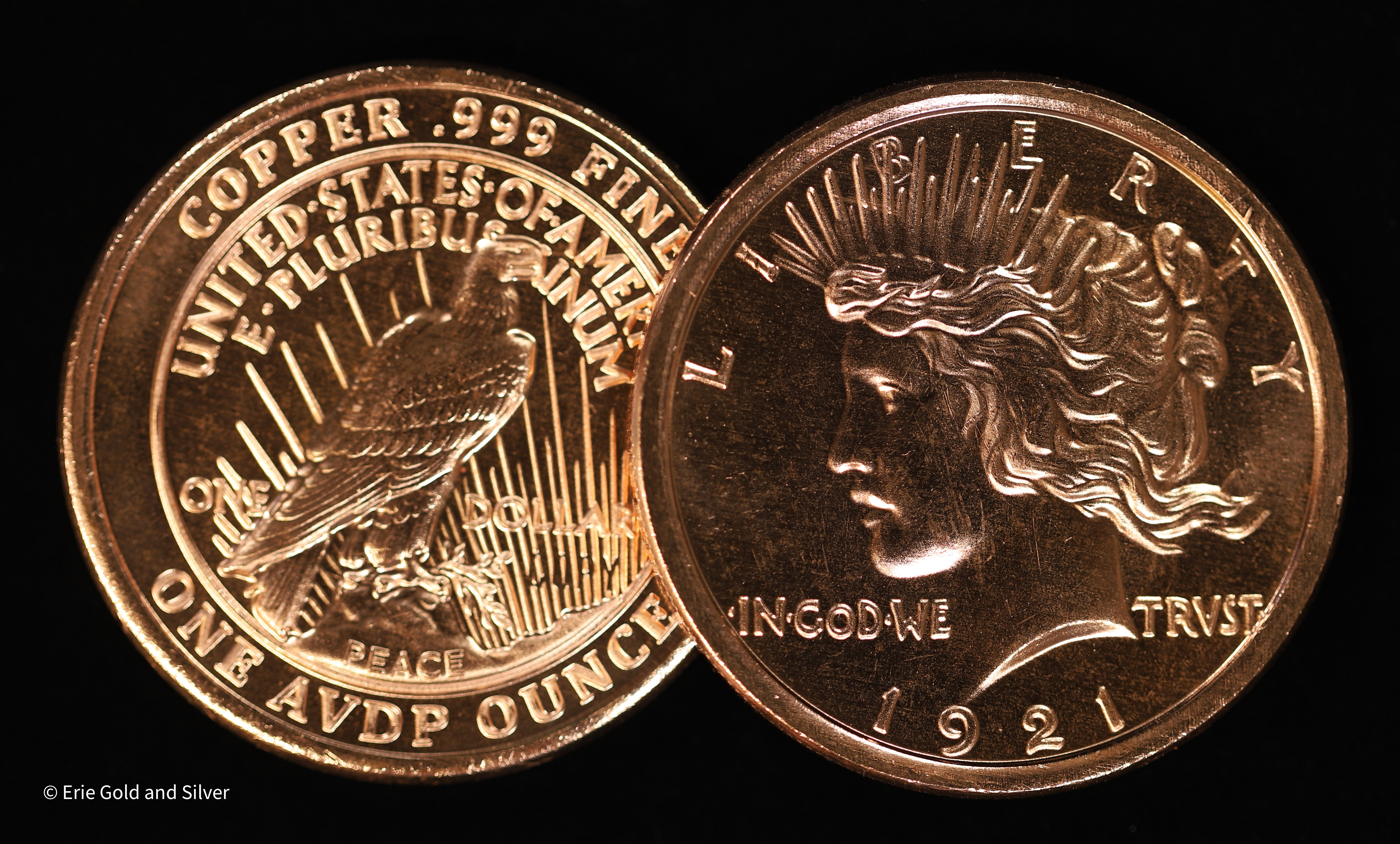 1 oz AVDP Copper Round | 1921 Peace Dollar