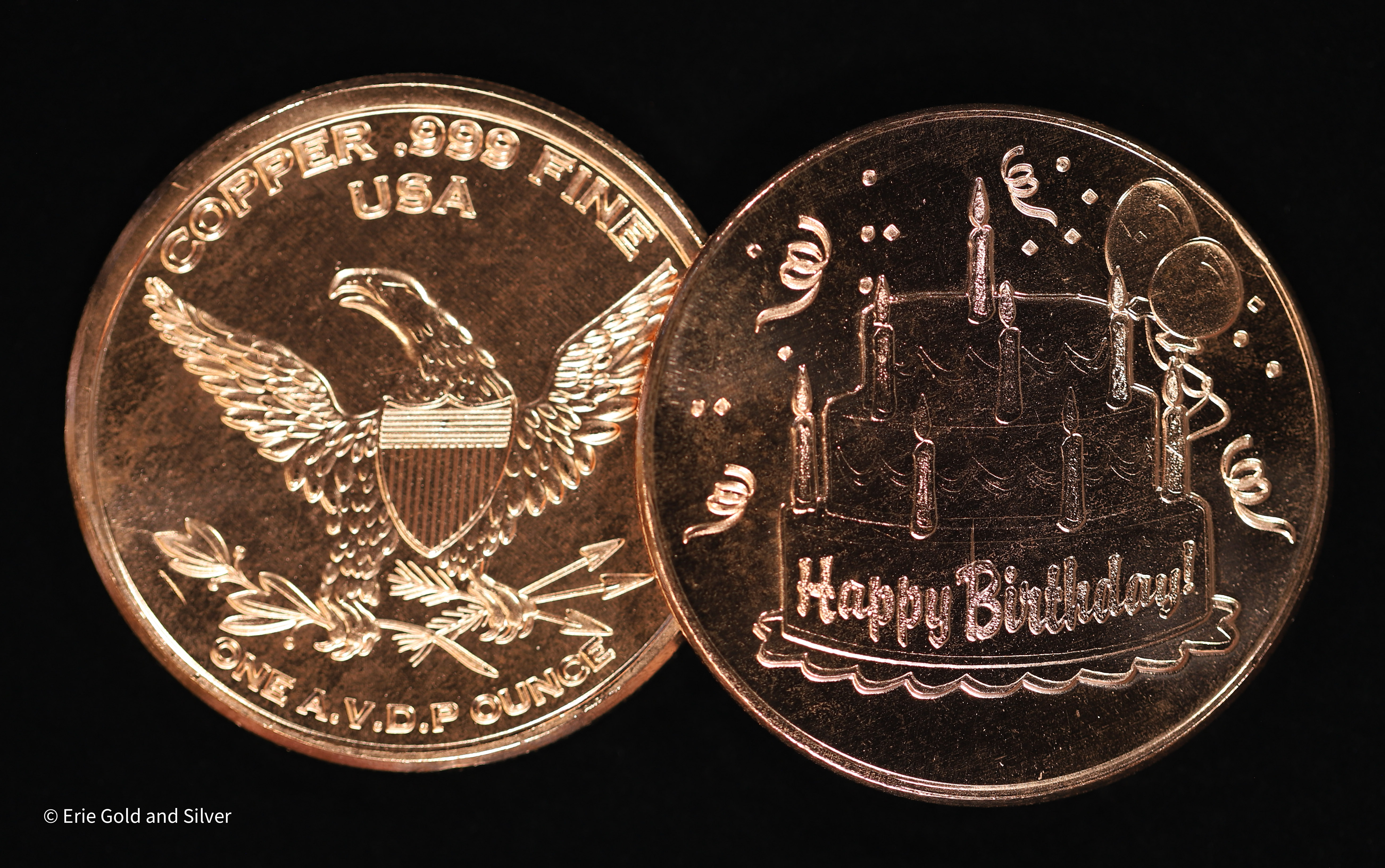 1 oz AVDP Copper Round | Happy Birthday Cake