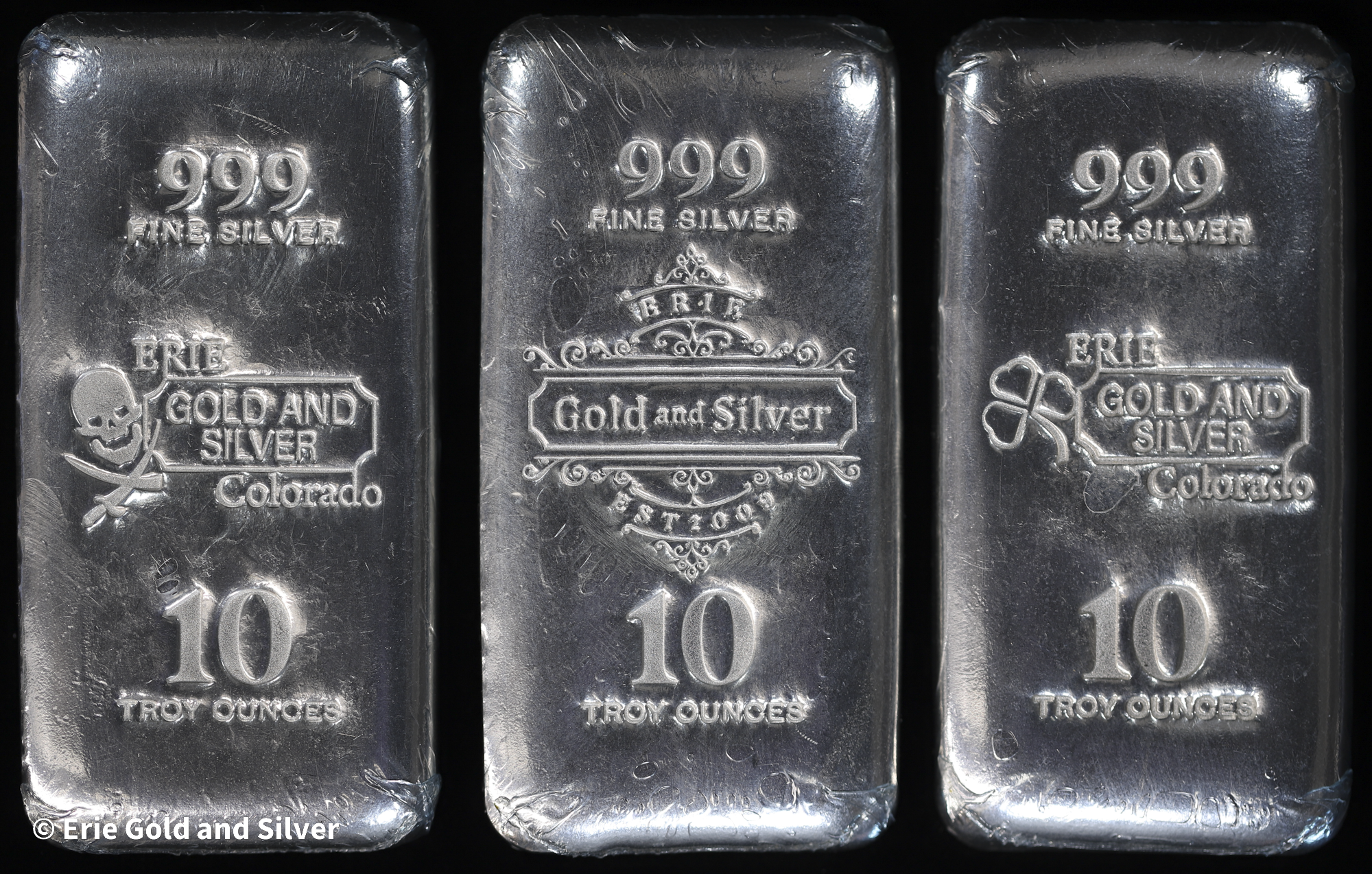 The Erie Gold and Silver 10 oz Silver Cast Bar is a premium in-house bullion product, crafted from 10 troy ounces of .999 fine silver and produced in the United States.