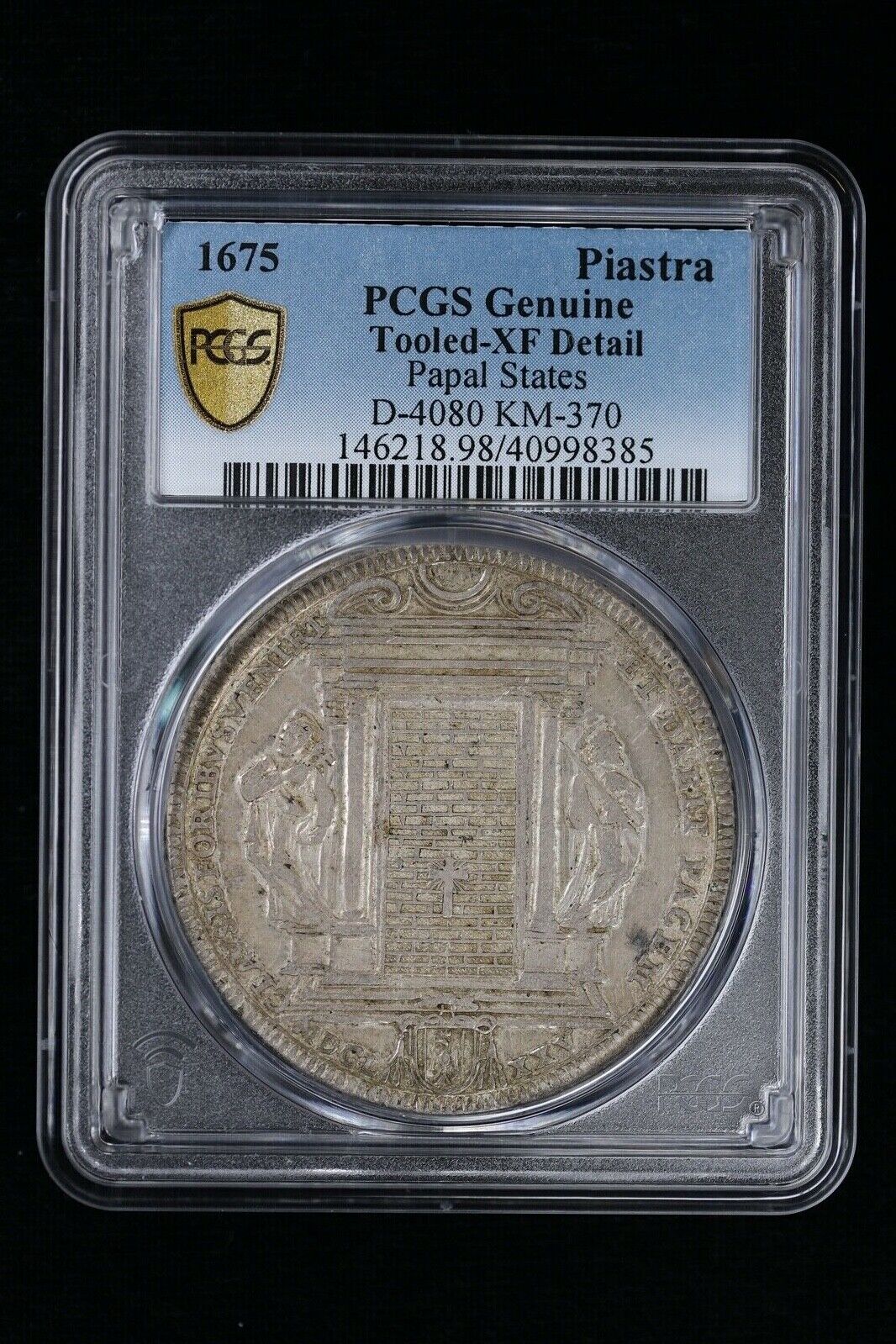 1675 Italian Papal States Clement X Silver Piastra PCGS XF Detail (Tooled) | D-4080, KM-370