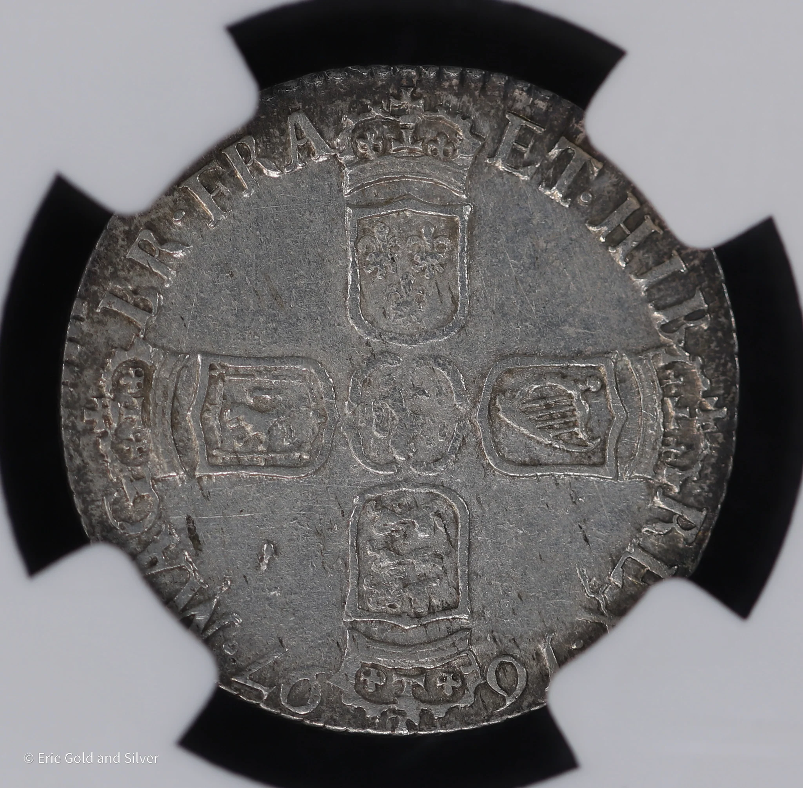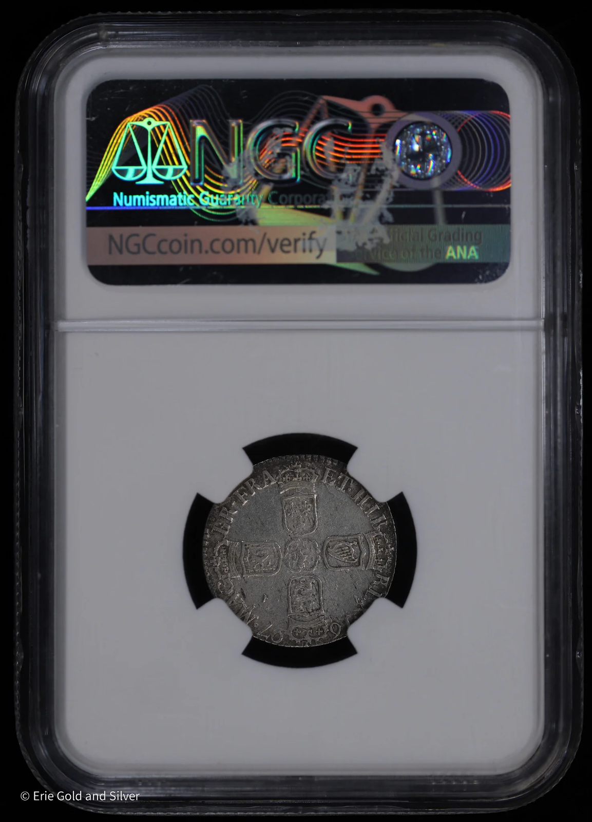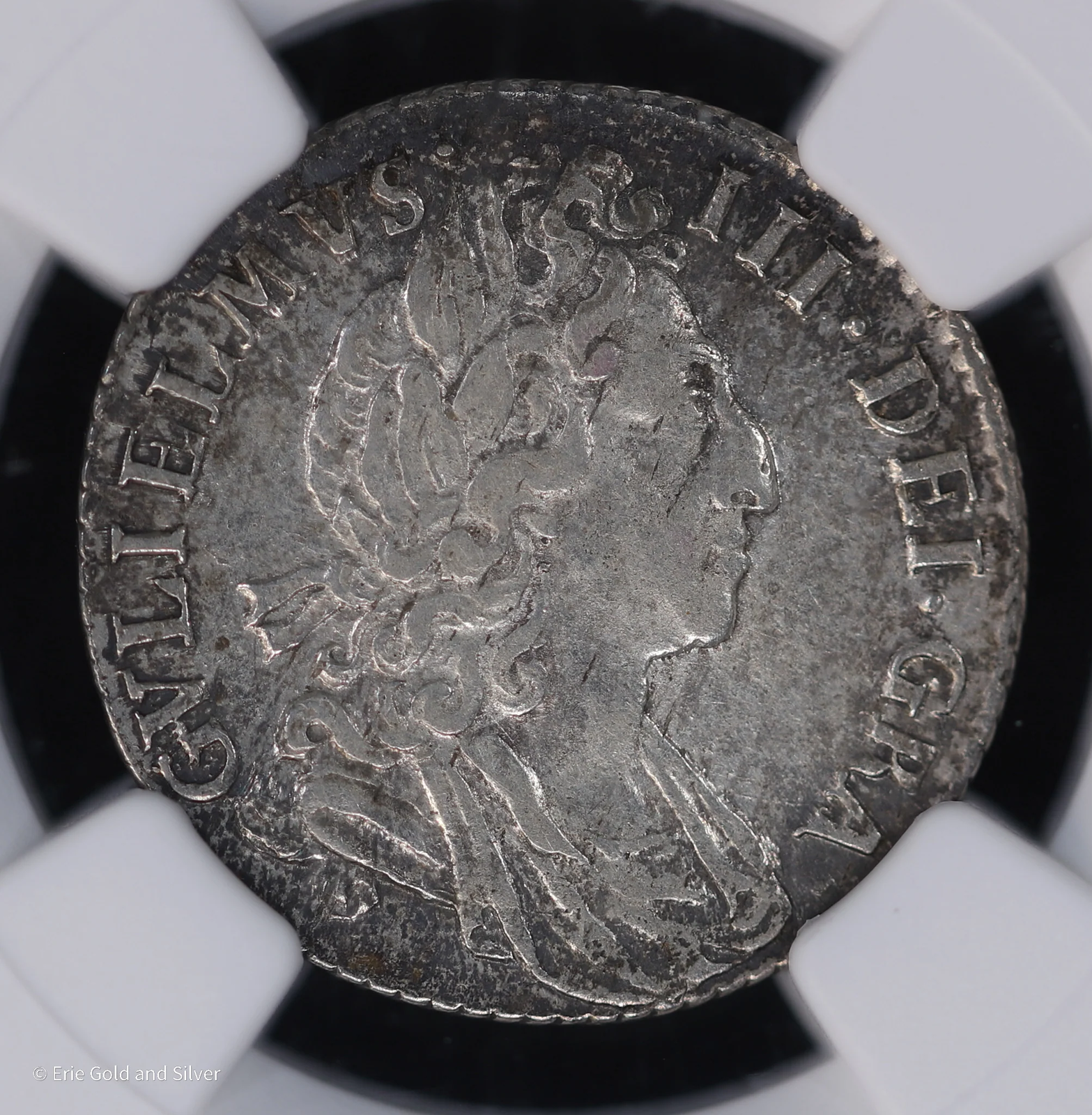 1697 6 Pence Silver England William III NGC AU 53 Large Crowns
