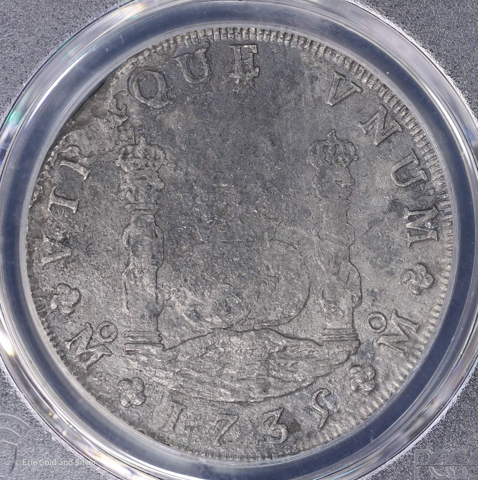 1735-Mo MF 8R Mexico Silver Pillar Dollar PCGS VF Detail | Calico-1443 | Sea Sal