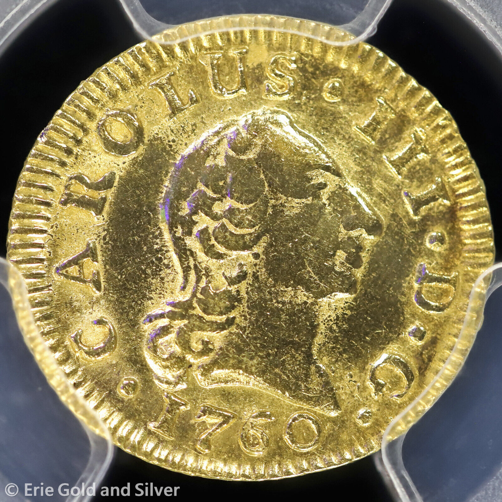 1760-M JP Spain Gold Half Escudo PCGS Genuine XF Detail | Madrid
