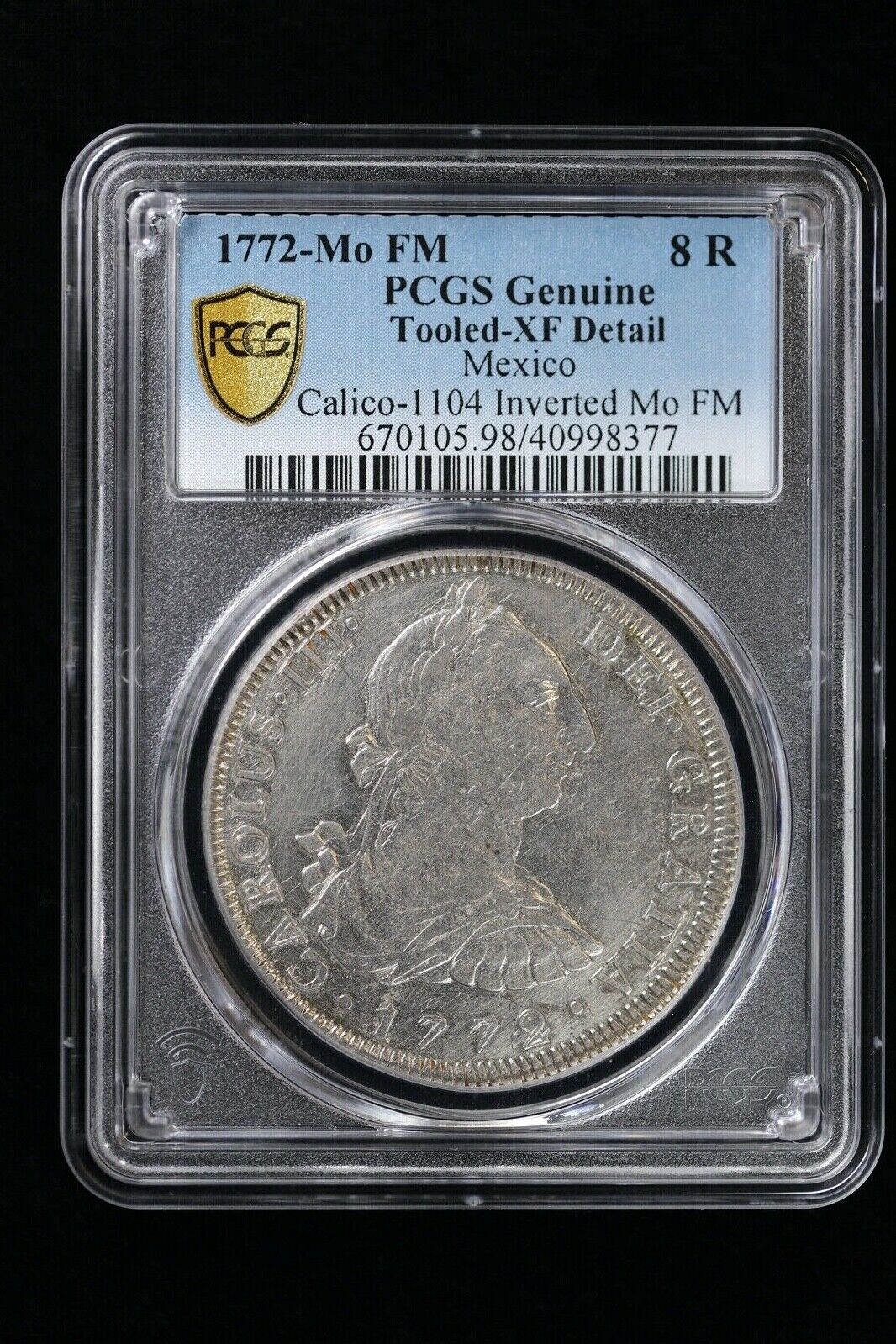1772-Mo FM Mexico Silver 8 Reales PCGS XF Detail (Tooled) | Calico-1104 Inverted Error