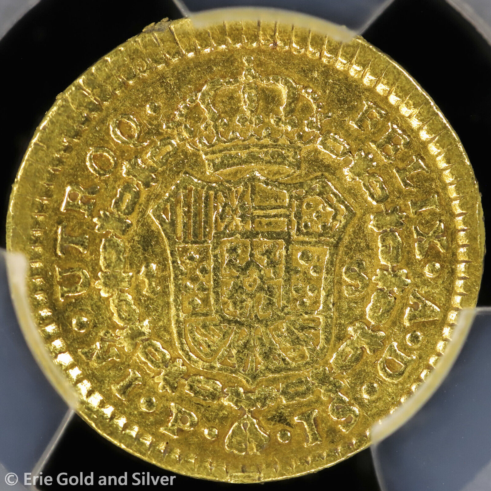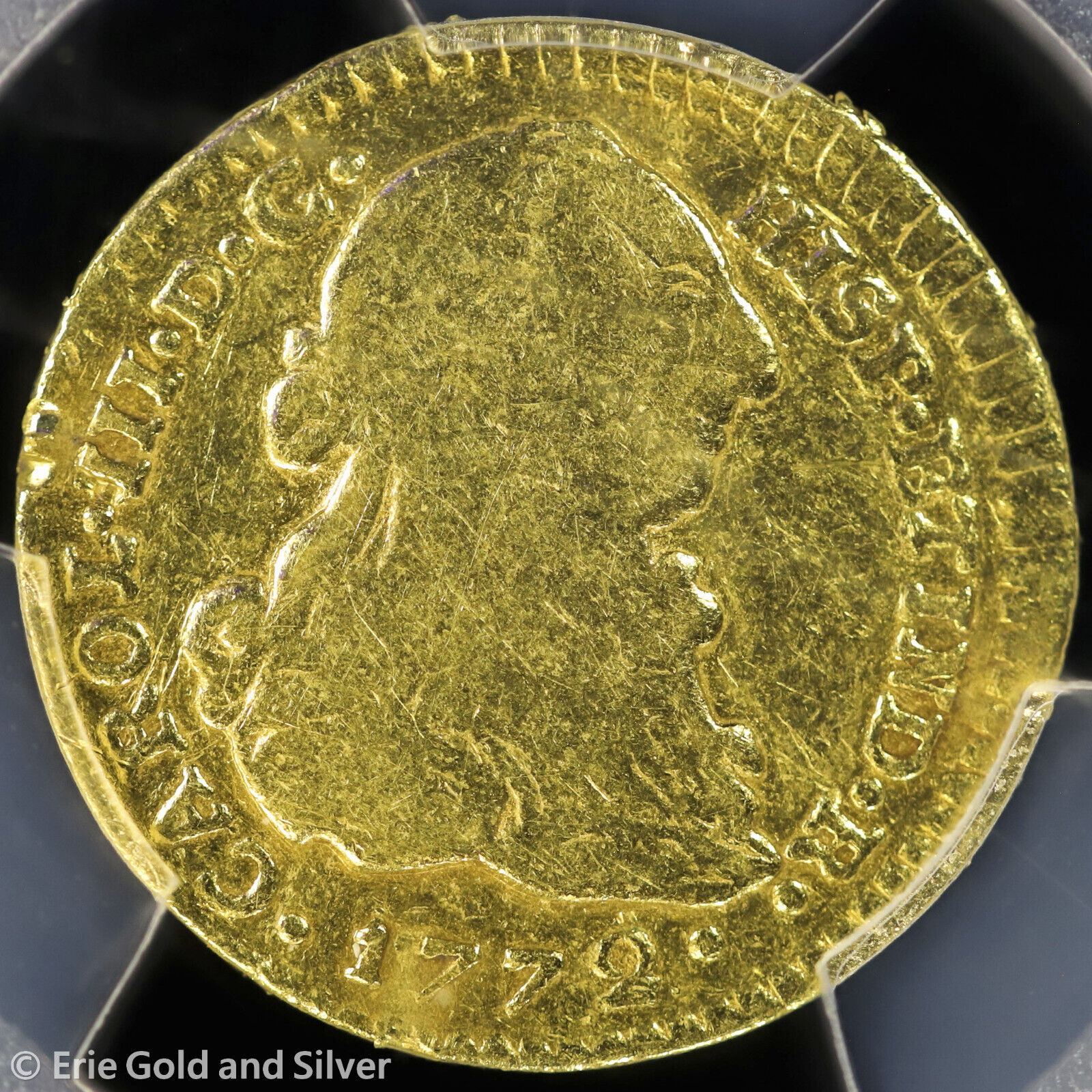 1772-P JS Colombia Gold Charles III Escudo Coin PCGS Genuine F Detail
