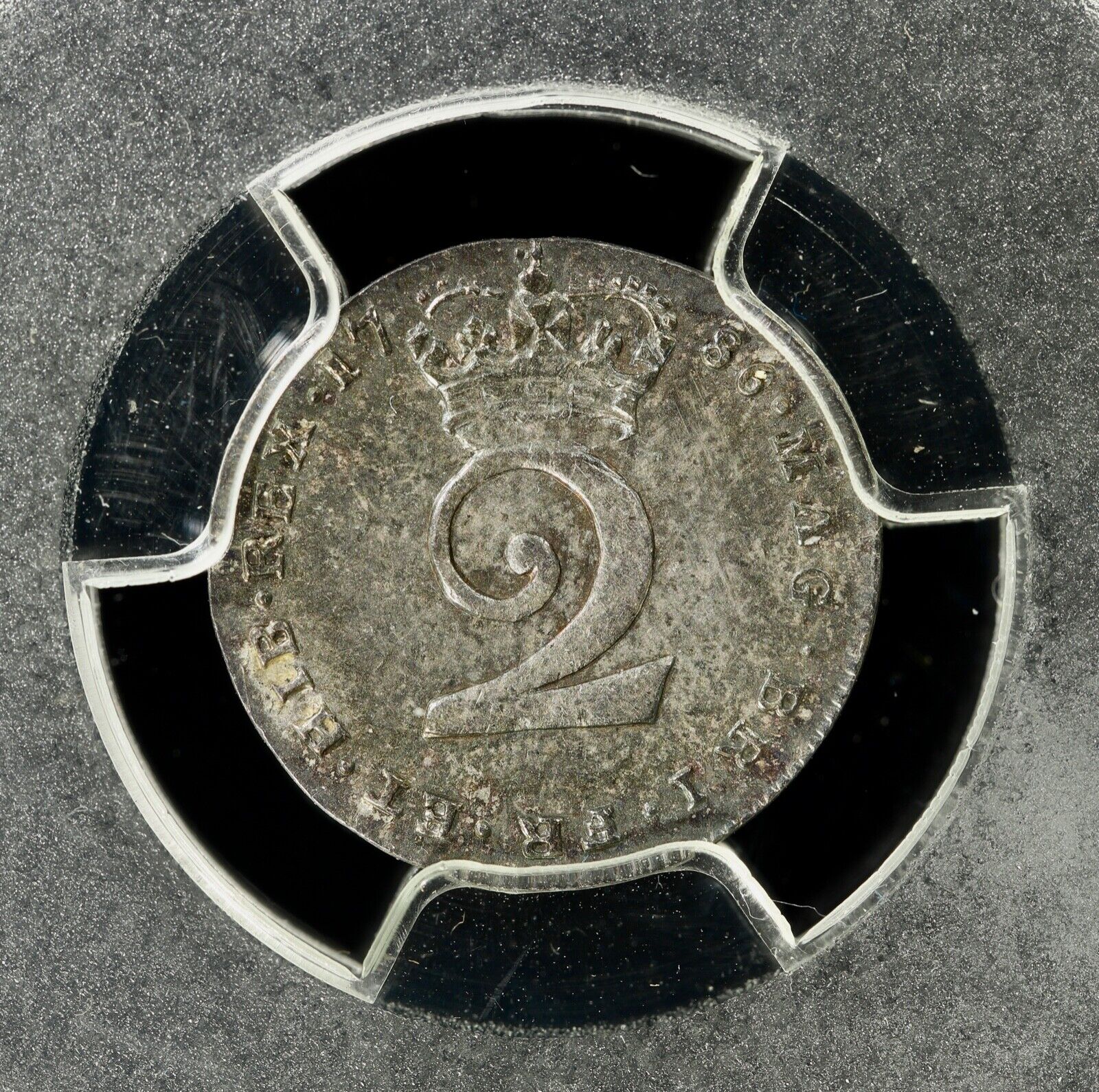 1786 TONED George III Great Britain Silver Maundy 2 Pence 2D PCGS MS 62 S-3756