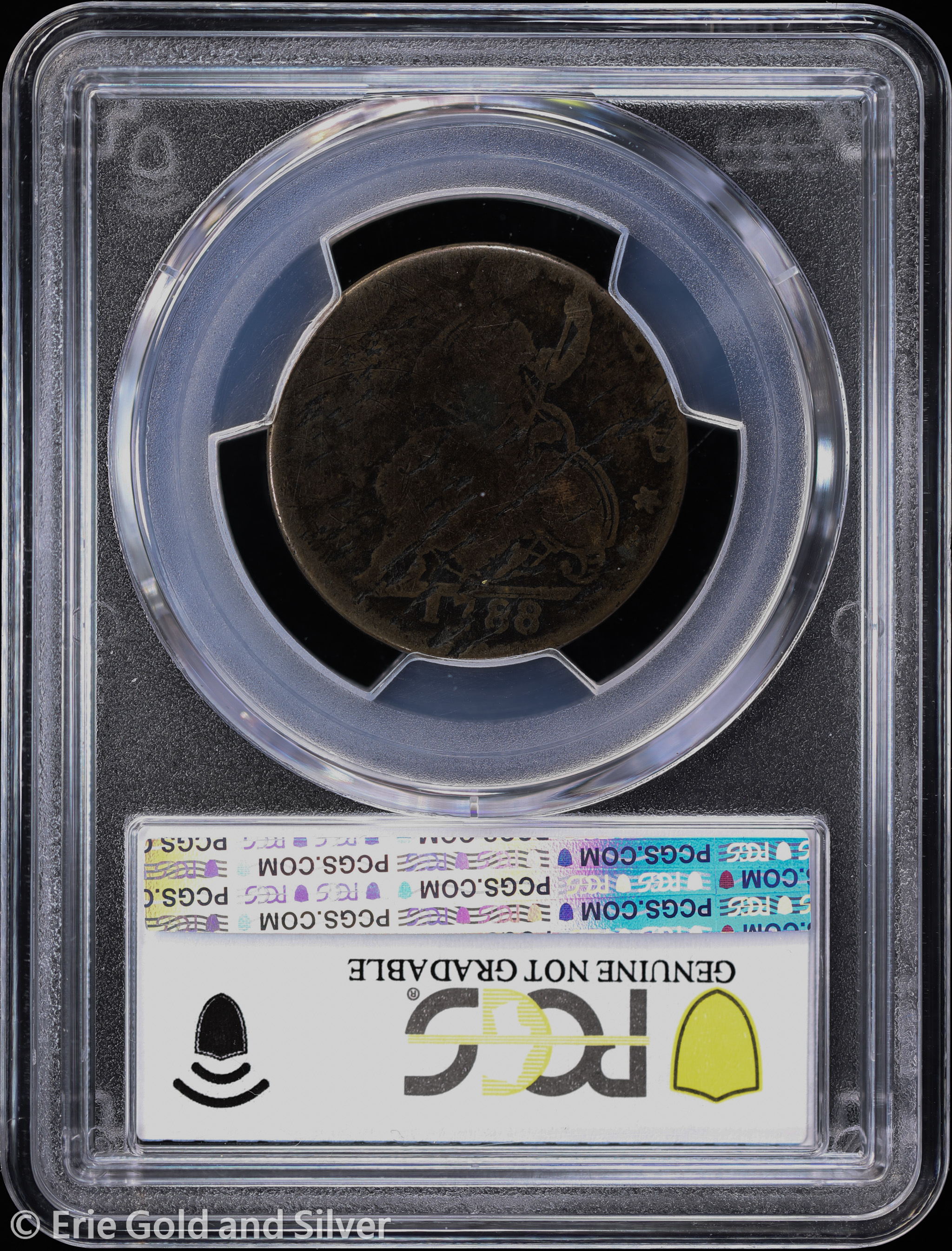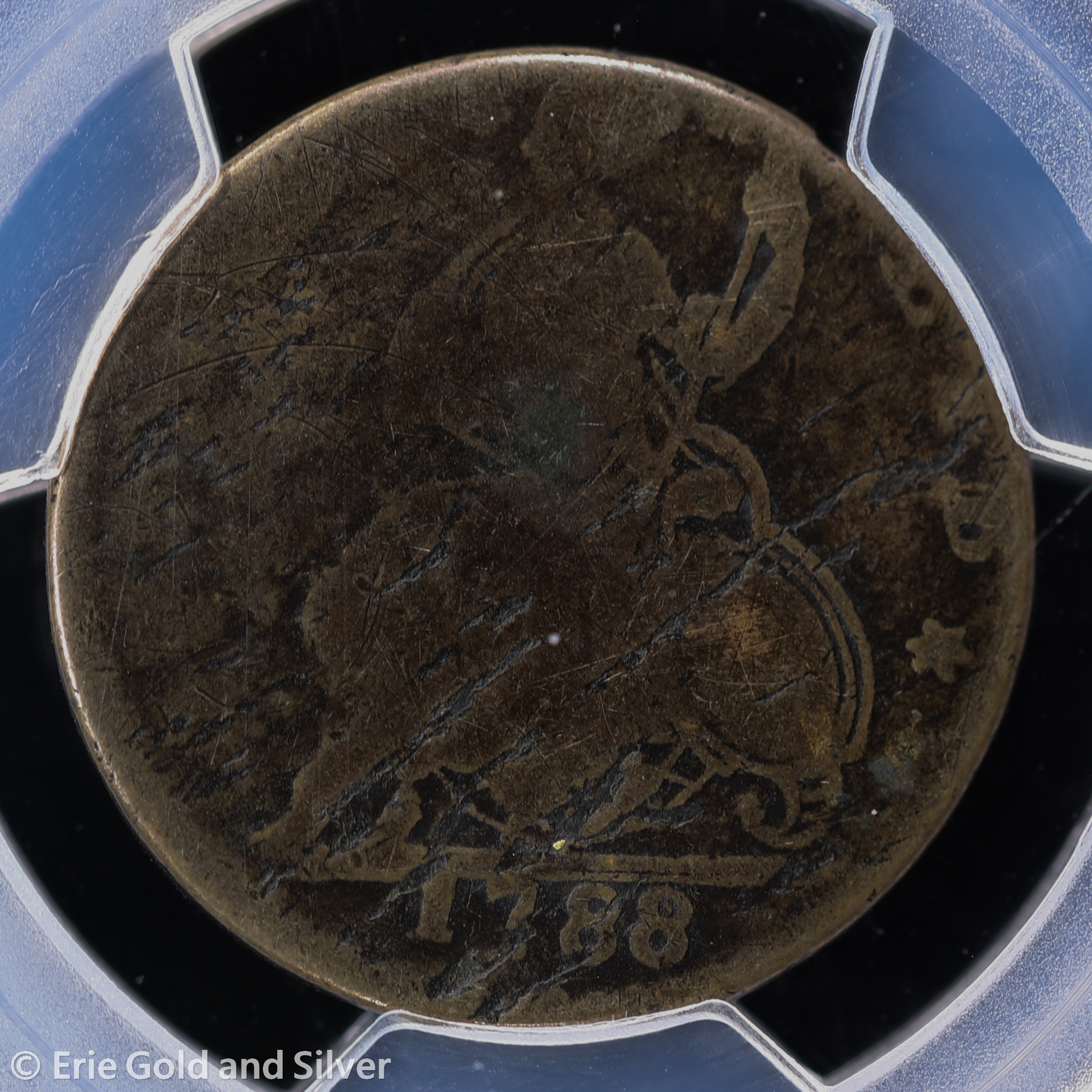 For sale is a 1788 Connecticut Mailed Bust Left Colonial Copper Half Penny. Certified / graded by PCGS at Genuine AG Detail.