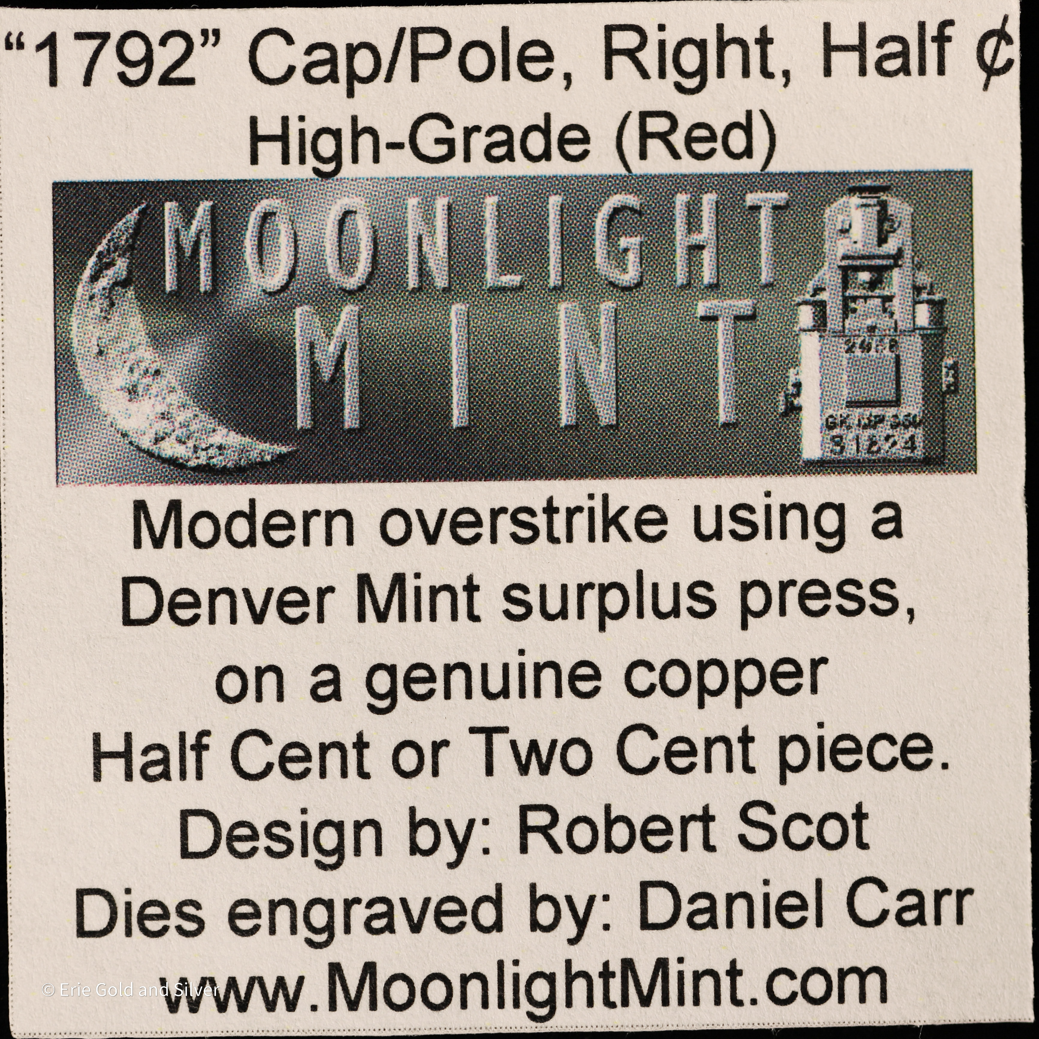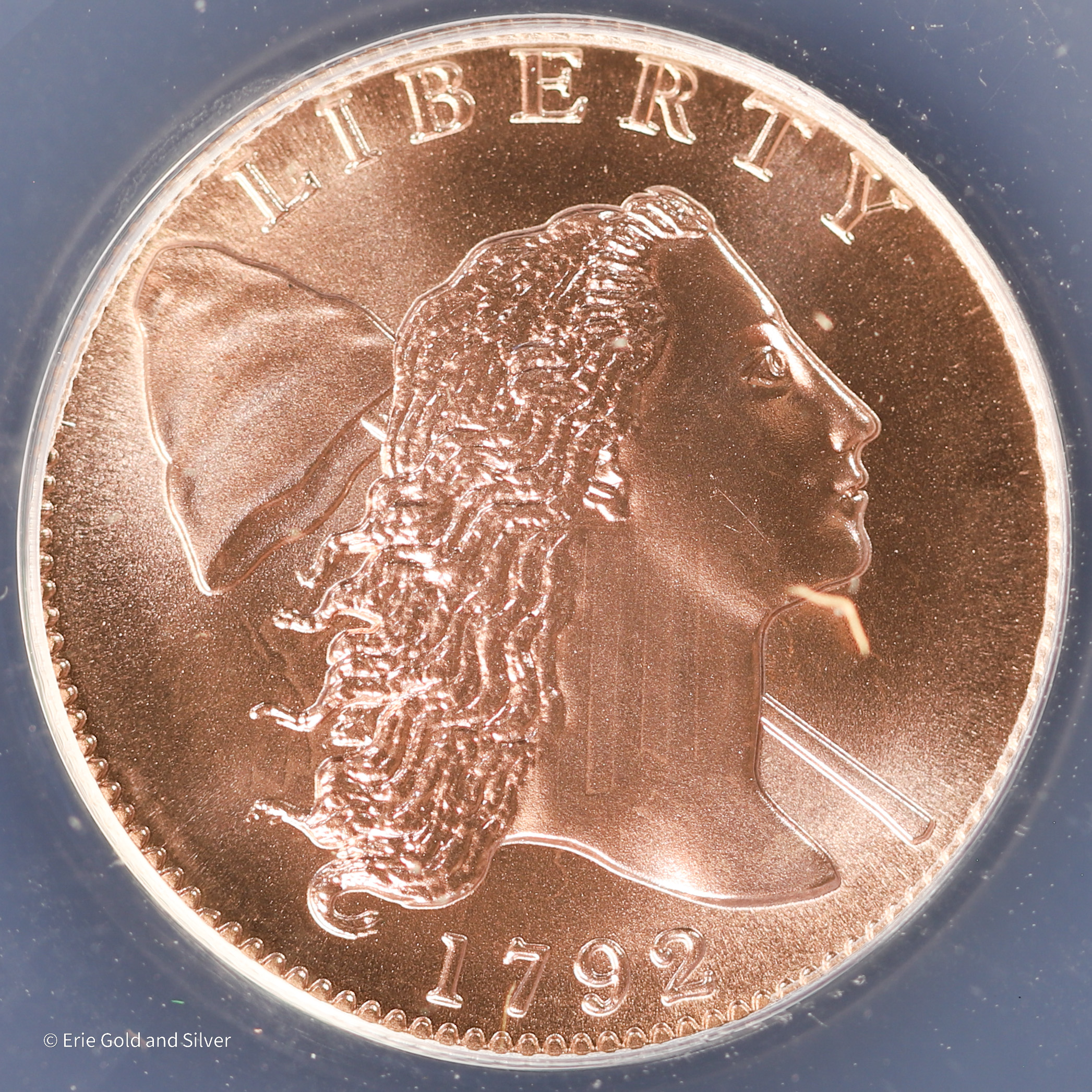 1792 Dan Carr Cap 1/2C Head Right O/S on USA 1864-70 2C Token ANACS MS 69 Red