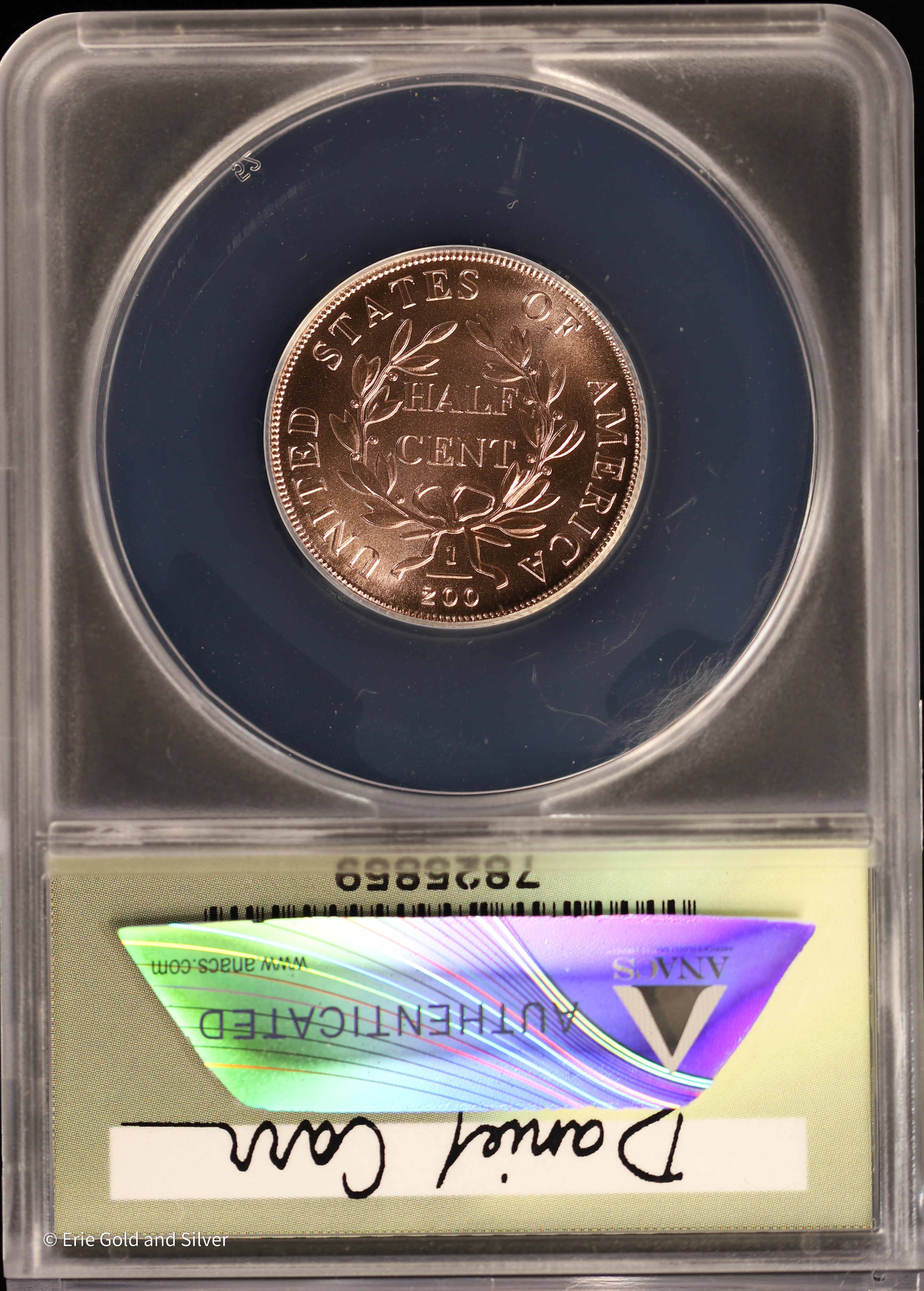 For sale is a 1792 Dan Carr Cap 1/2C Head Right O/S on USA 1864-70 2C Token. Graded / Certified by ANACS at MS 69 Red.