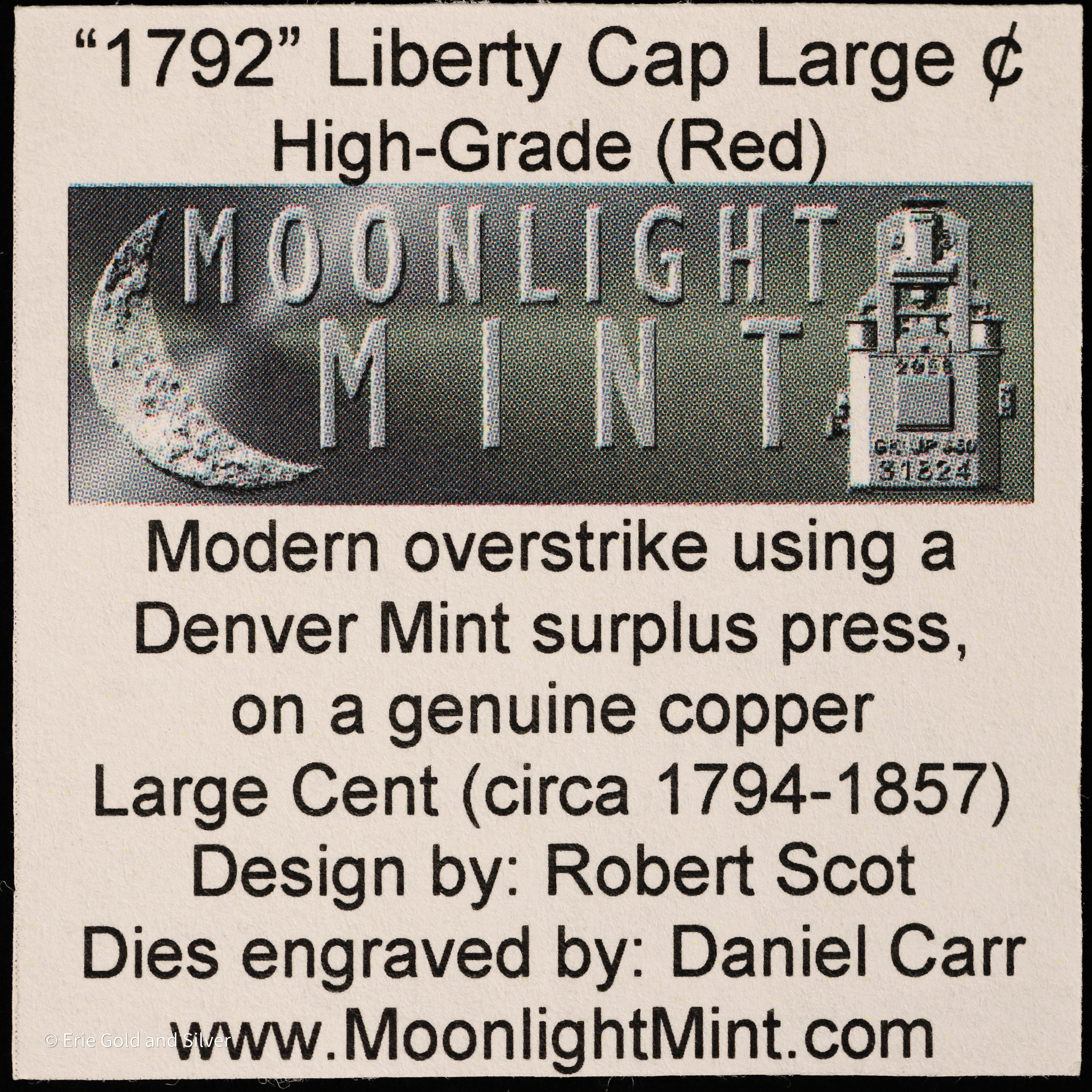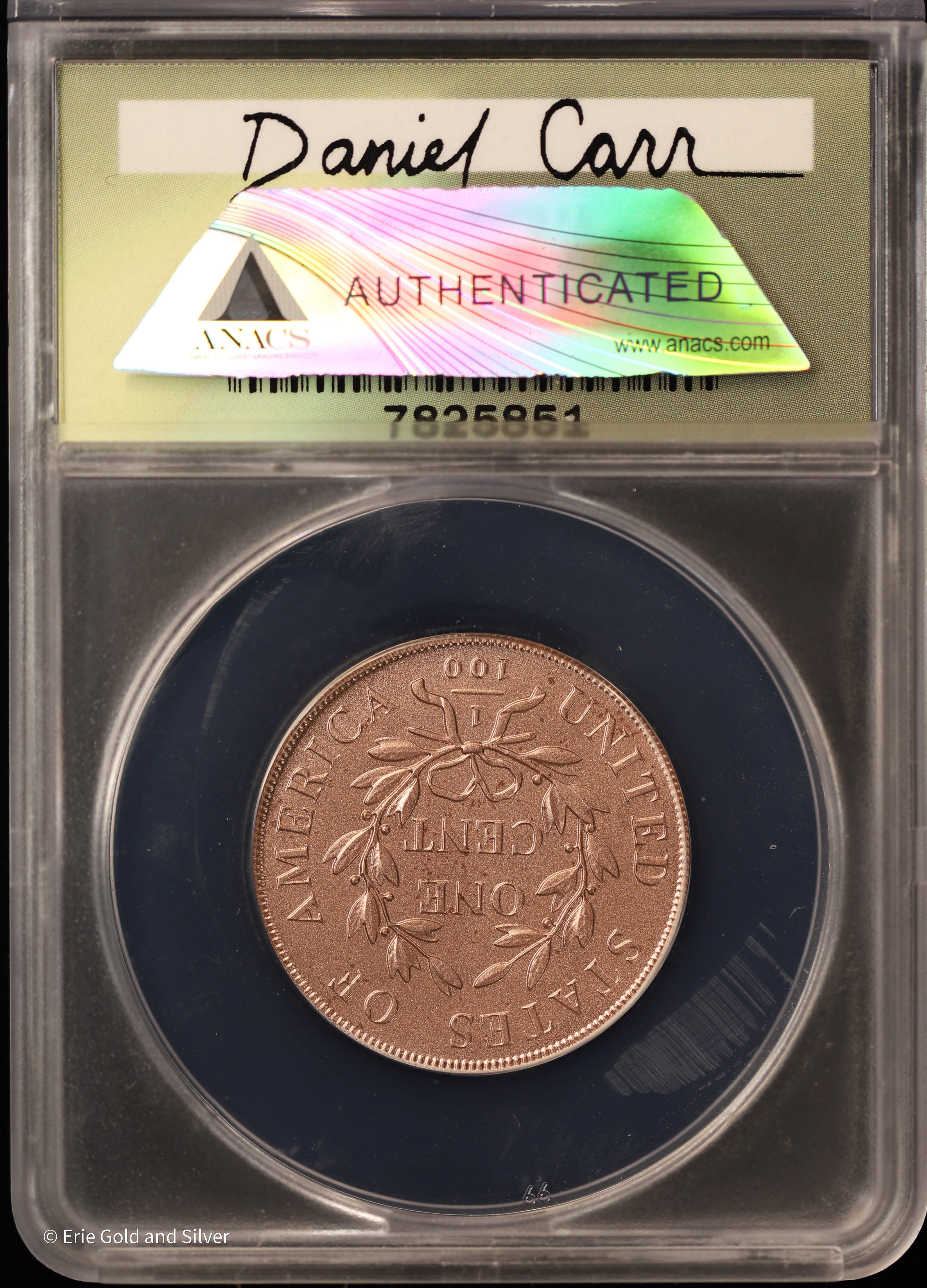 1792 Dan Carr Liberty Cap 1C O/S on USA 1794-1857 1 Cent Token ANACS MS 67 Red