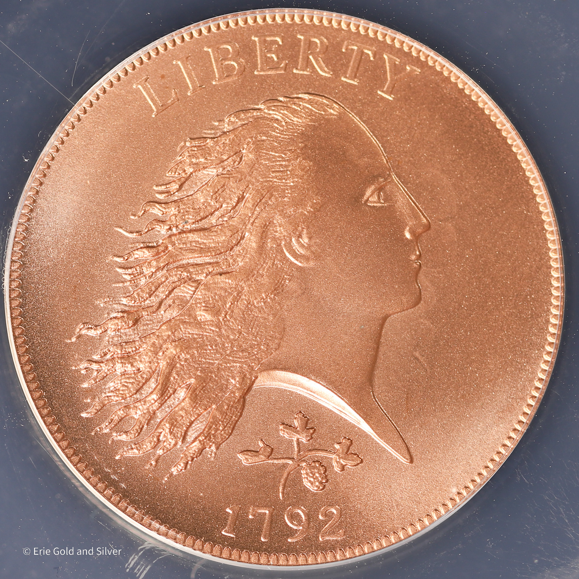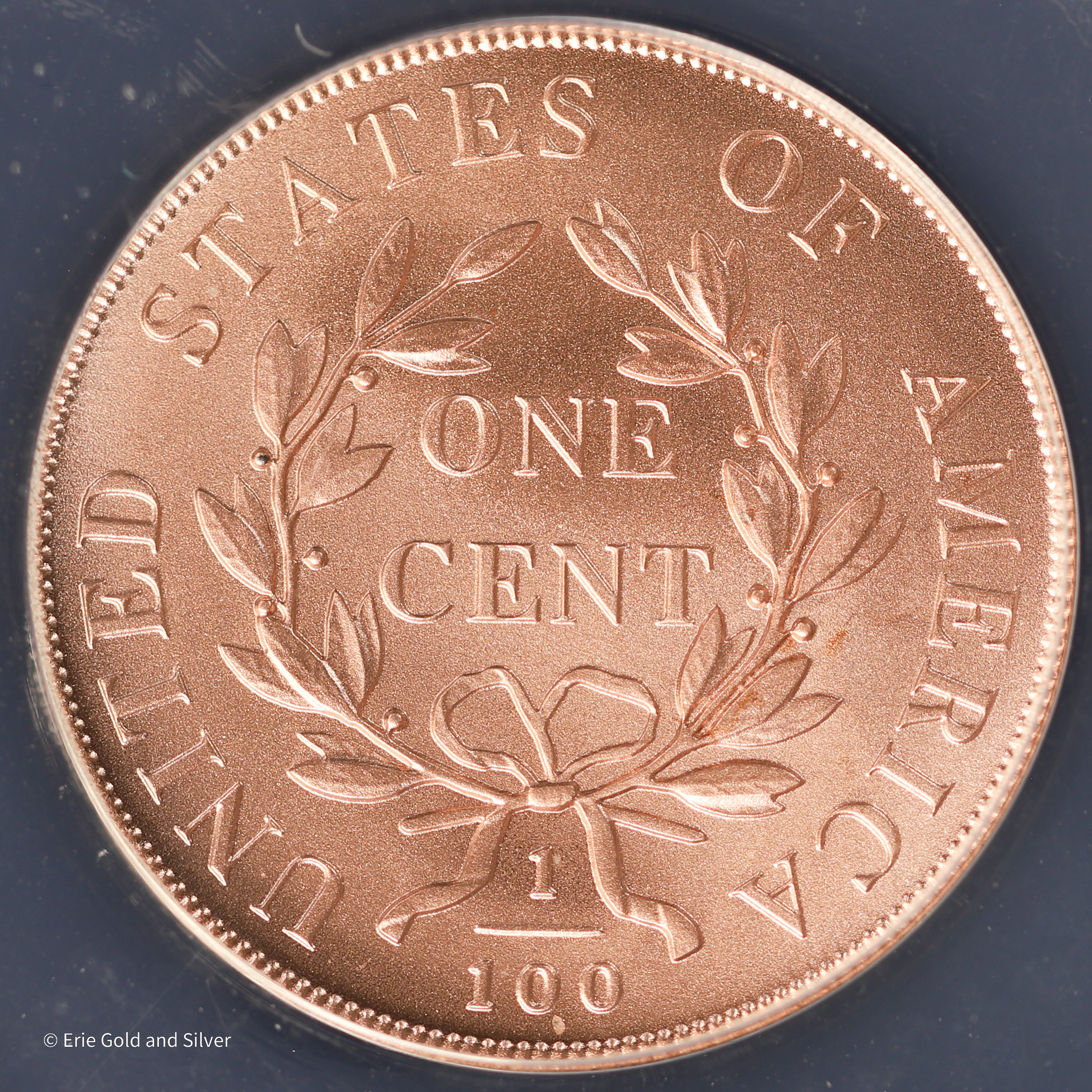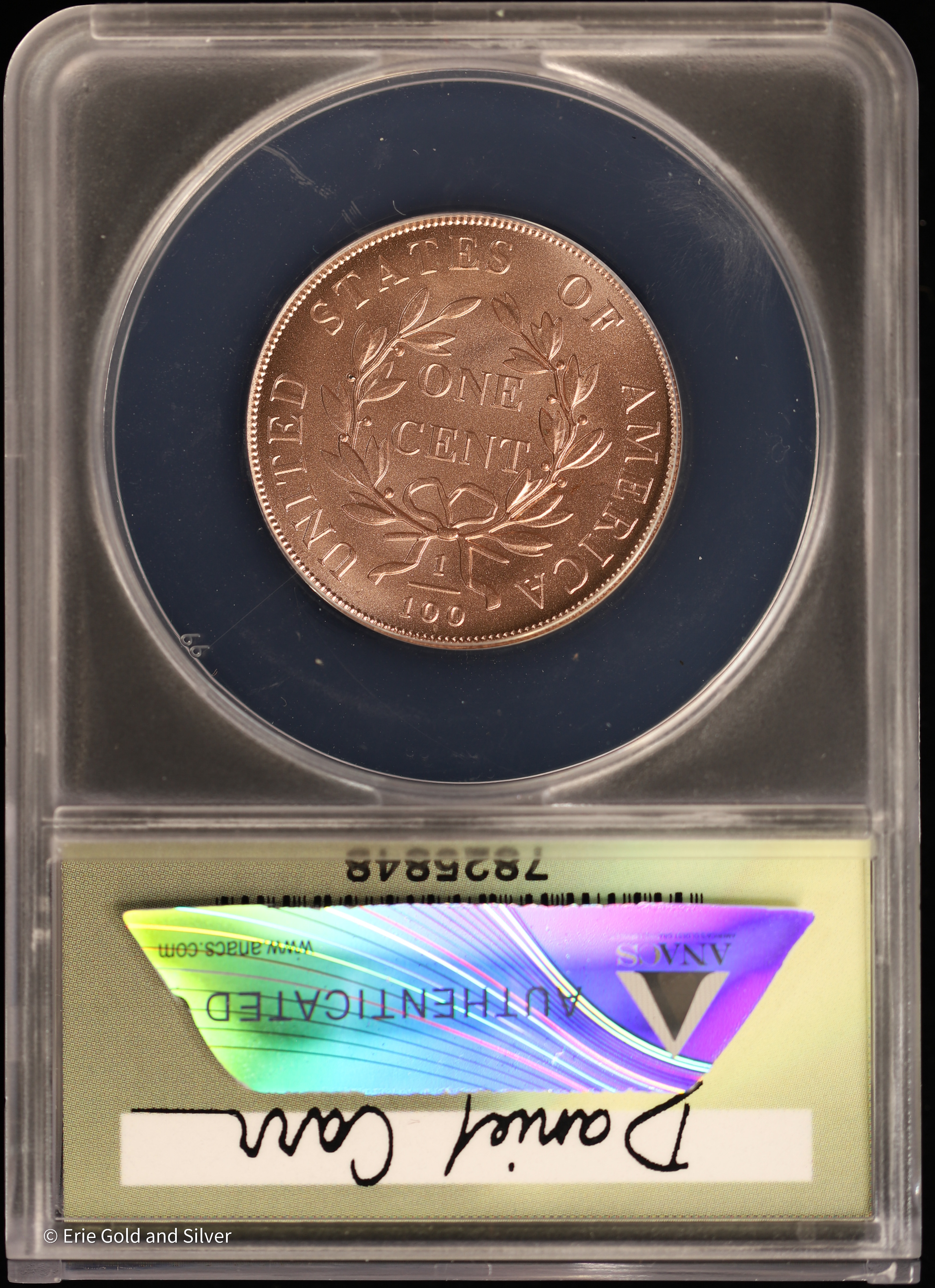 1792 Dan Carr Strawberry Leaf 1C O/S on USA 1794-1857 1 Cent Token ANACS MS 69 Red