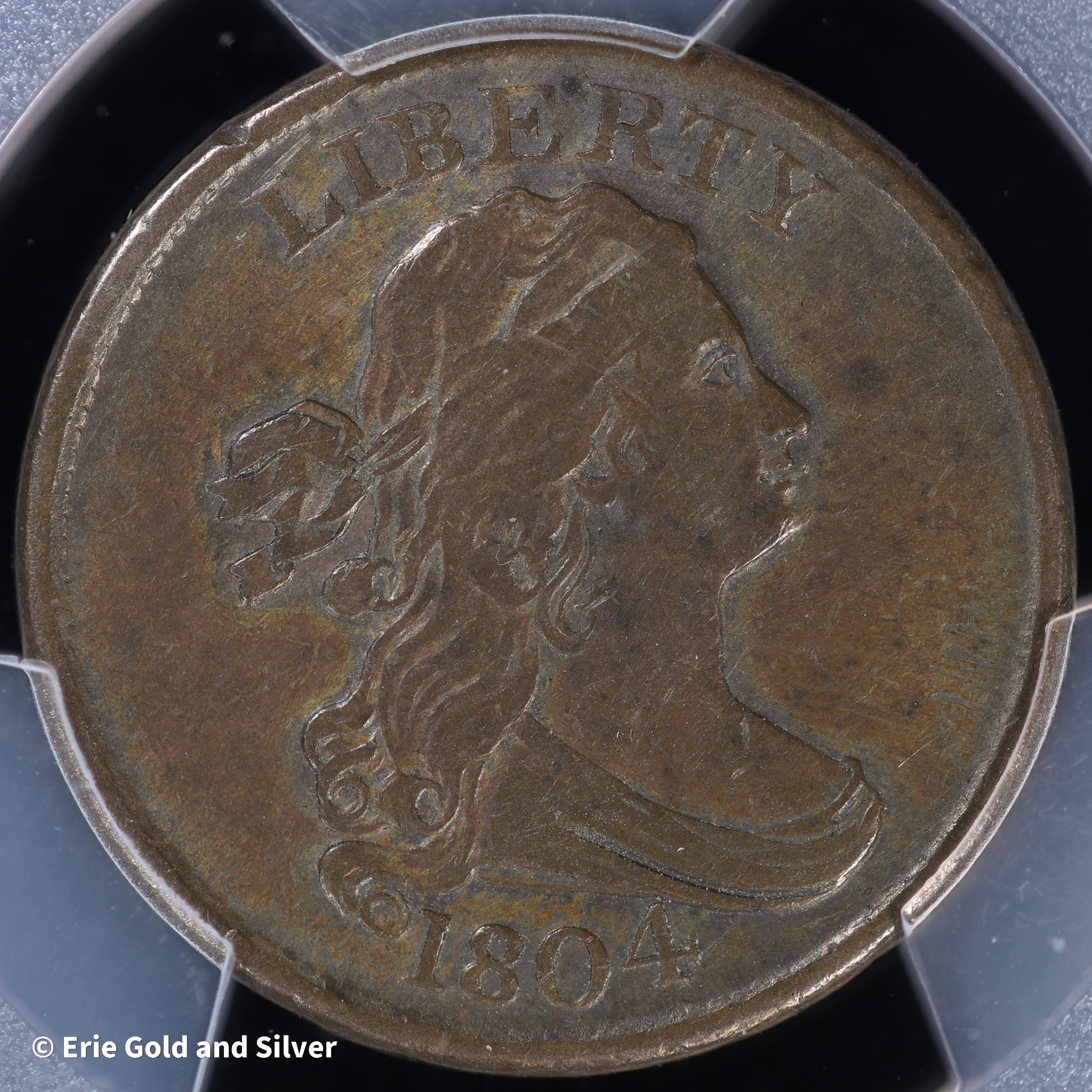 1804 1/2C Draped Bust Half Cent PCGS Genuine VF Detail (Cleaned) | Spiked Chin