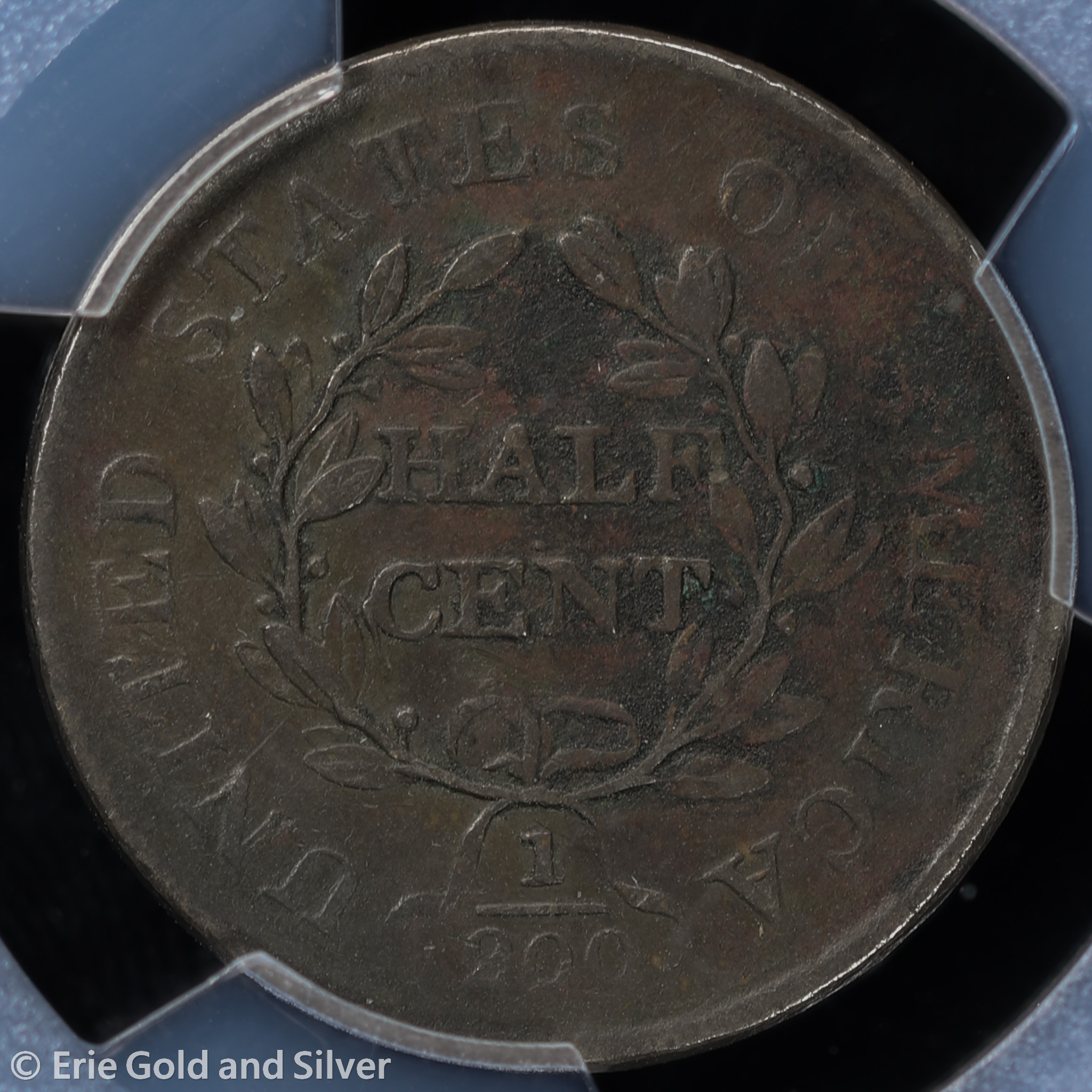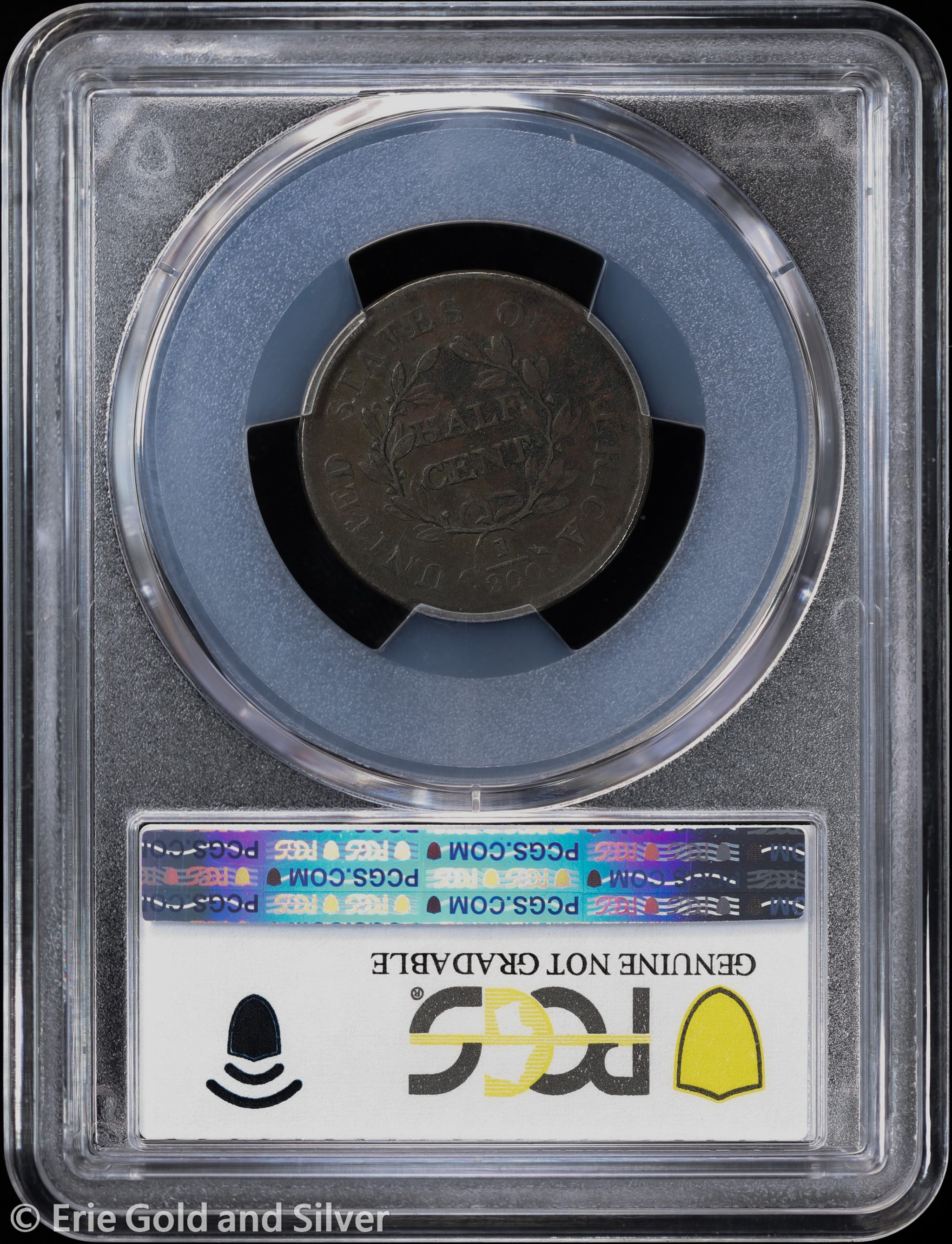 1806 Draped Bust Half Cent PCGS Genuine XF Detail (Environmental Damage) | Small 6, No Stems