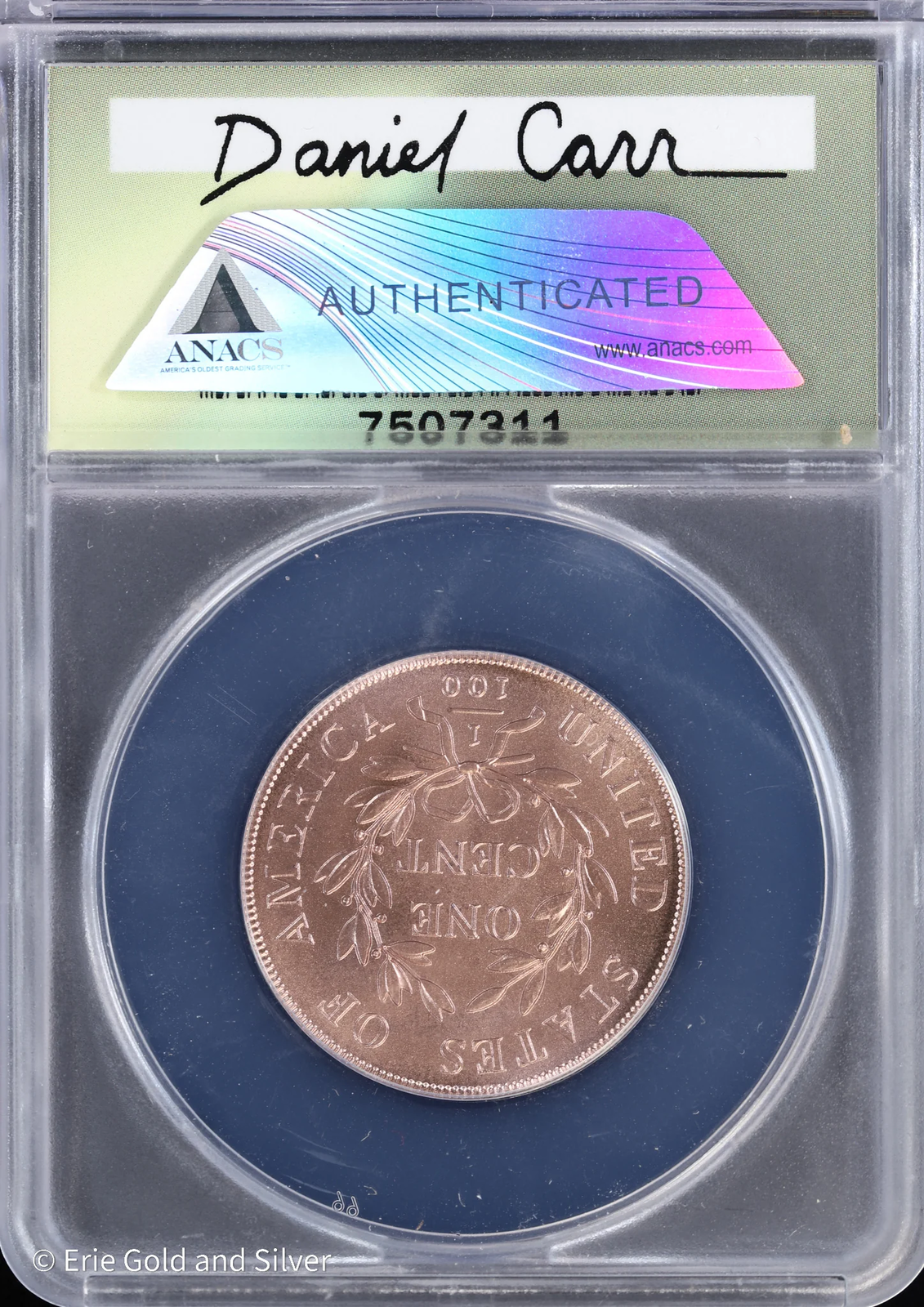 1808 Token Dan Carr Moonlight Mint Draped Bused Large Cent O/S on USA ANACS MS 6