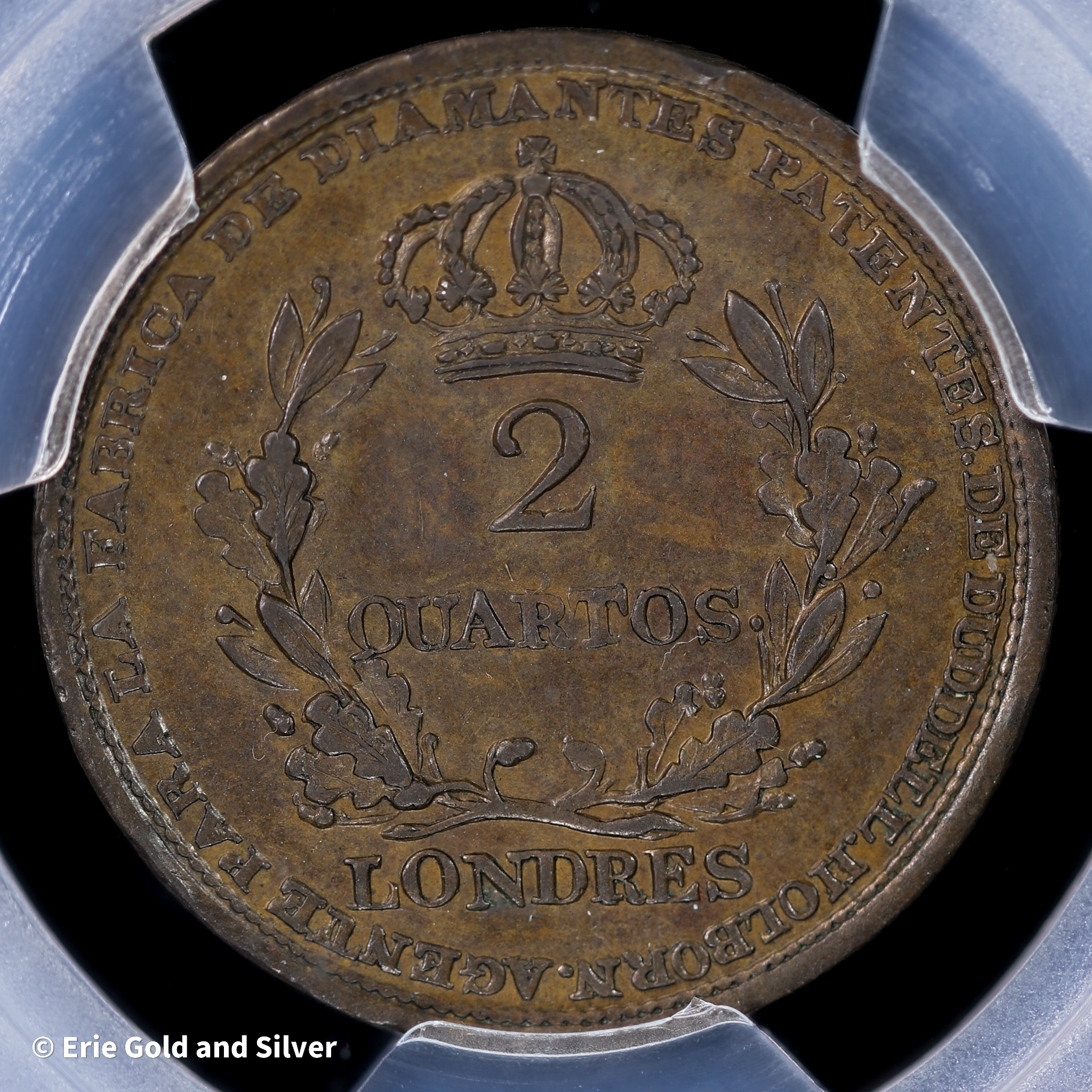 1813 Gibraltar 2 Quartos Coin PCGS AU 58 | KM-Tn6