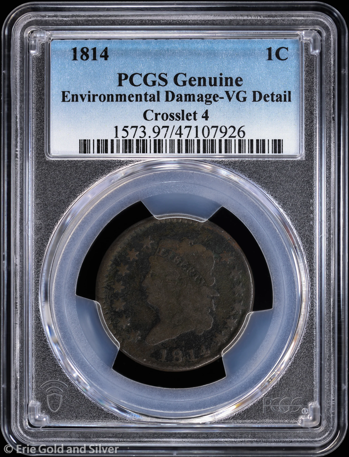 1814 1c Classic Head Large Cent PCGS Genuine VG Detail | Crosslet 4