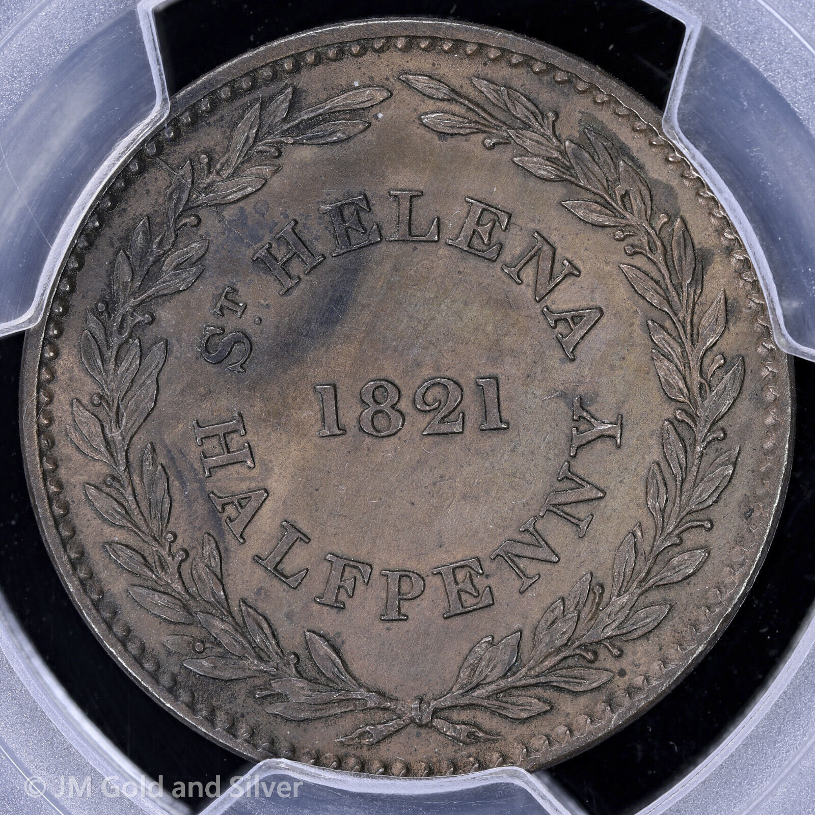 1821 1/2D St. Helena & Ascension Half Penny PCGS Genuine UNC Detail