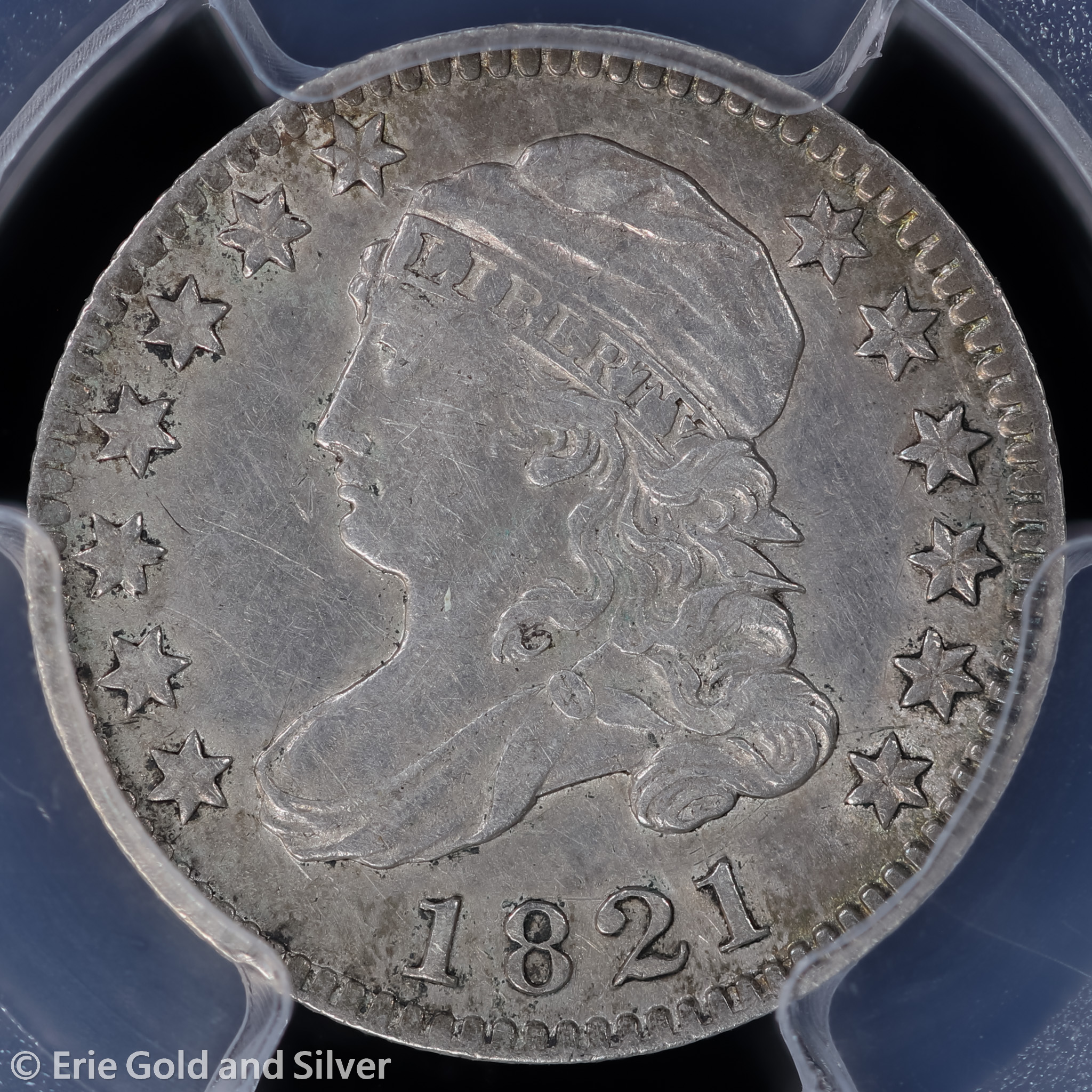 For sale is a 1821 Seated Liberty Dime. Certified / graded by PCGS at Genuine XF Detail.