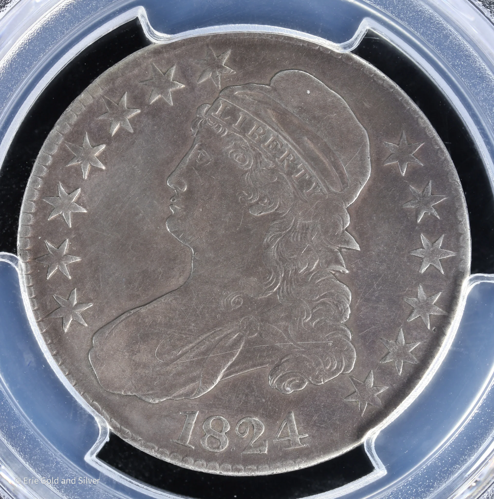 1824 50c Capped Bust Silver Half Dollar PCGS Genuine VF Detail