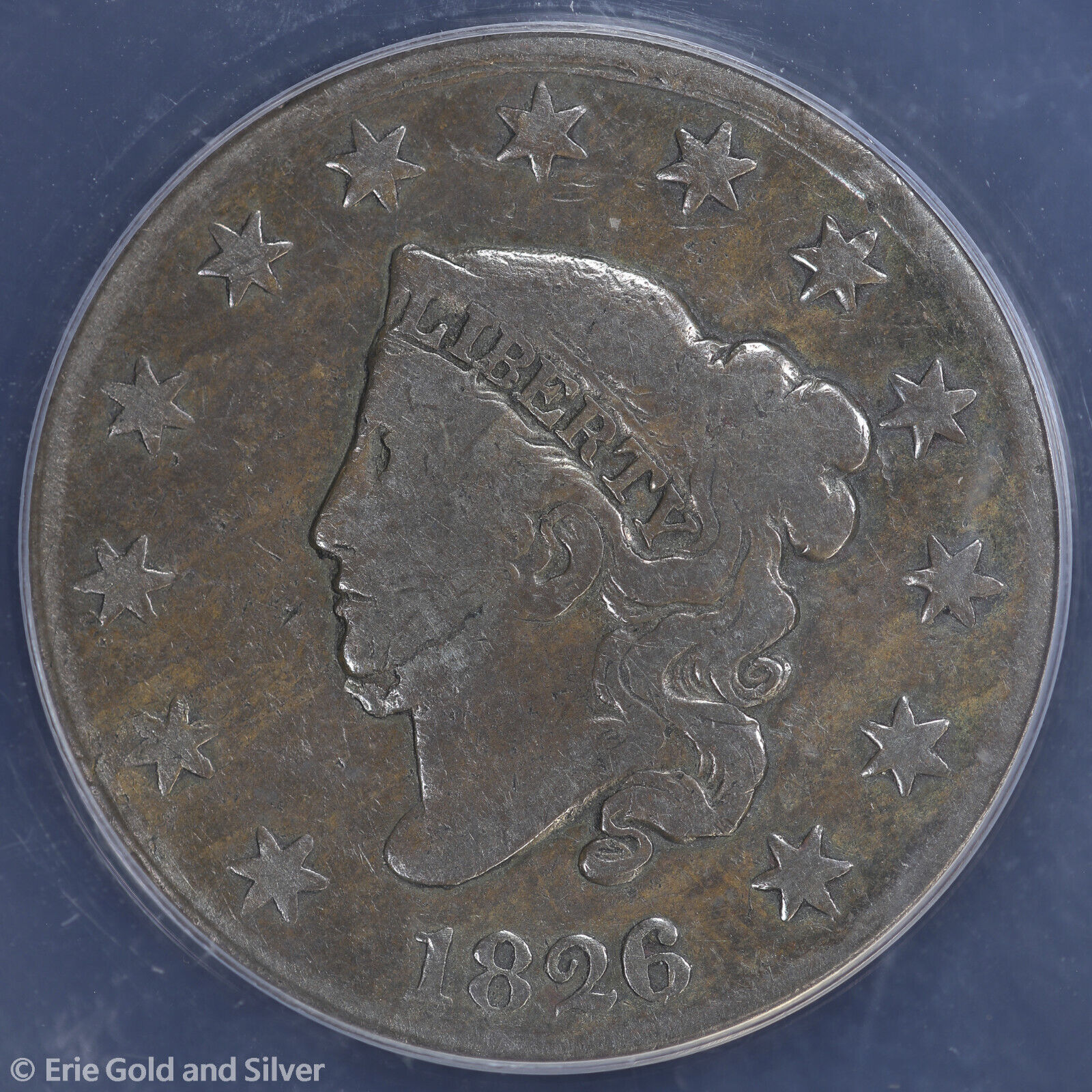1826 1c Coronet Head Large Cent ANACS VG 8