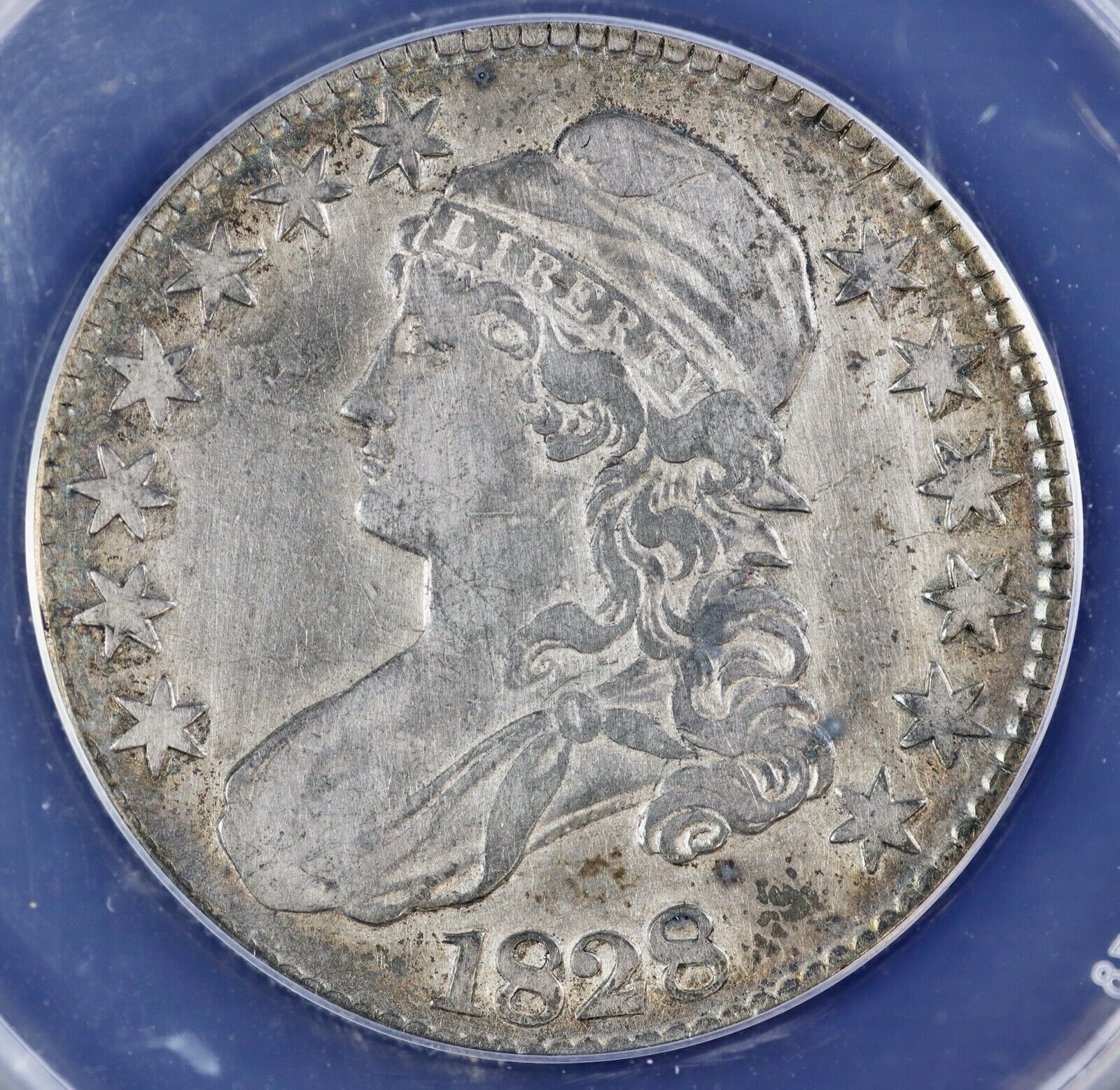 1828 50c Capped Bust Silver Half 1/2 Dollar ANACS VF 25 Details (Very Fine)