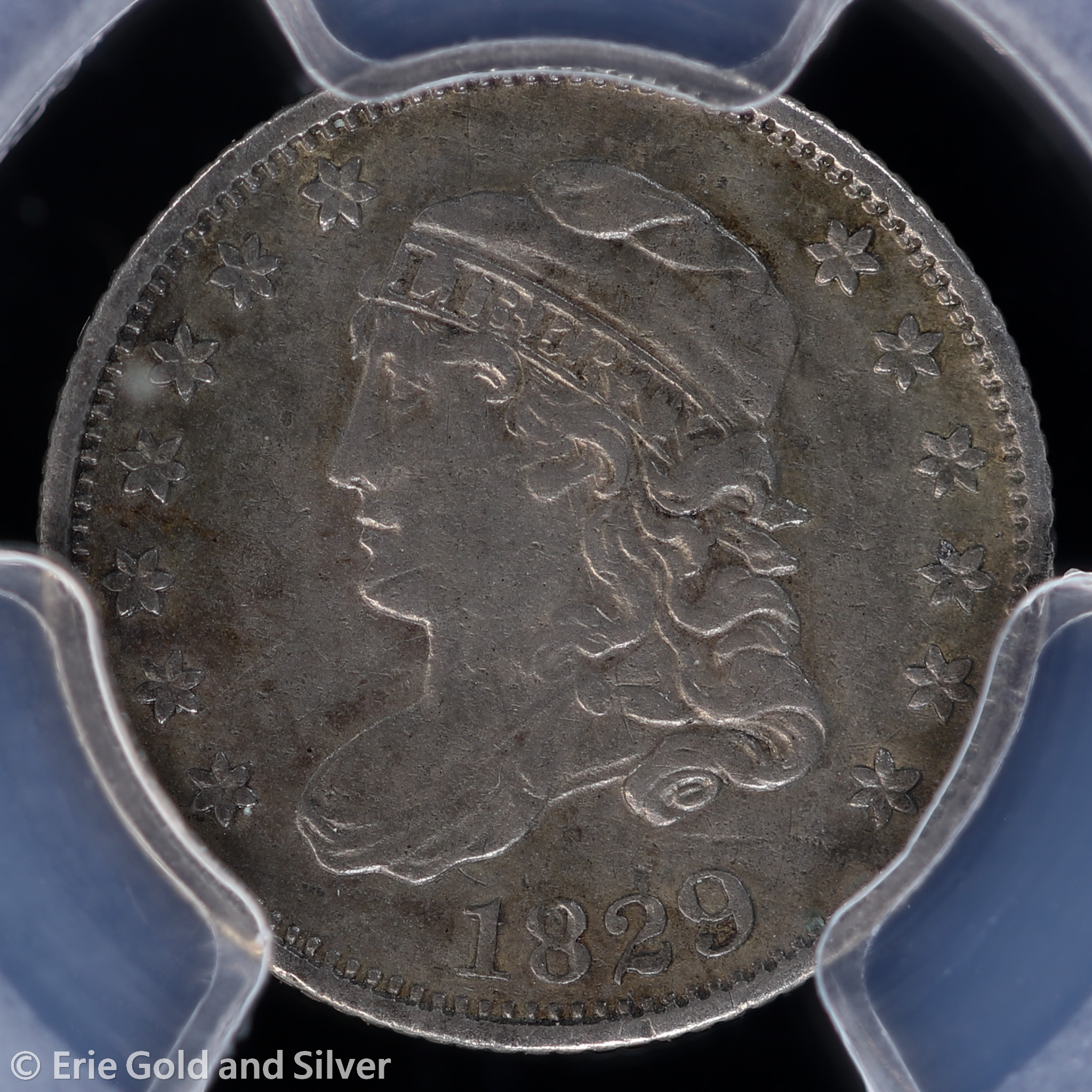 For sale is a 1829 Capped Bust Half Dime. Certified / graded by PCGS at Genuine XF Detail.