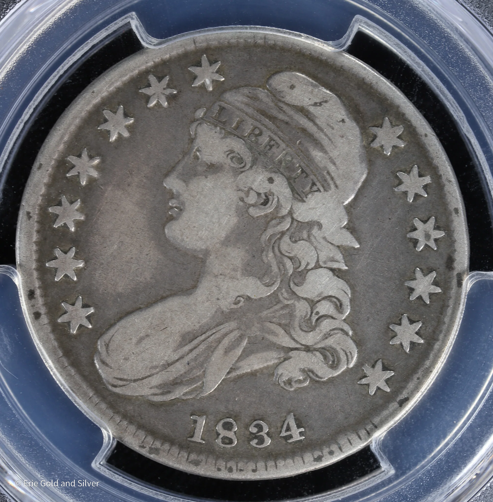 1834 50c Capped Bust Silver Half Dollar PCGS Genuine F Detail