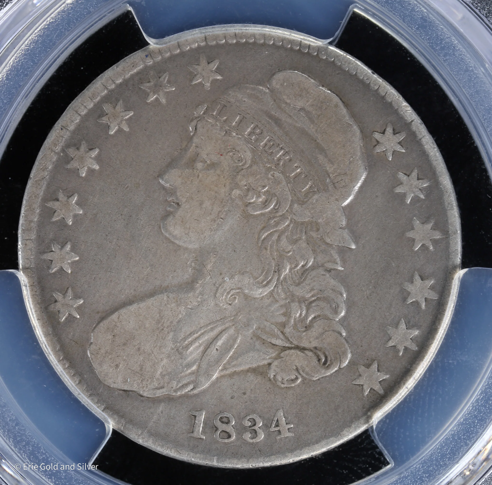 1834 50c Capped Bust Silver Half Dollar PCGS Genuine F Detail