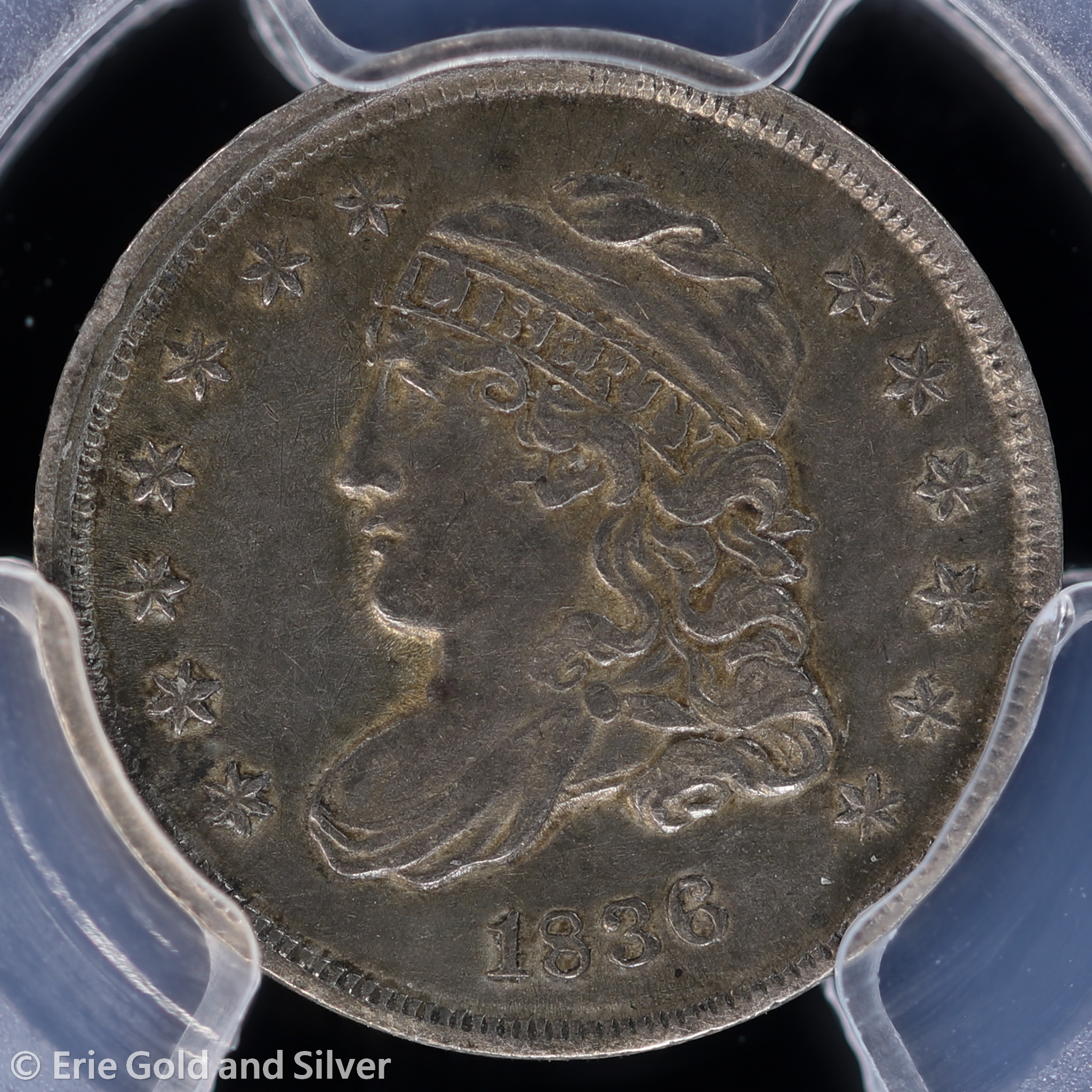 For sale is a 1836 Capped Bust Half Dime. Certified / graded by PCGS at Genuine AU Detail.