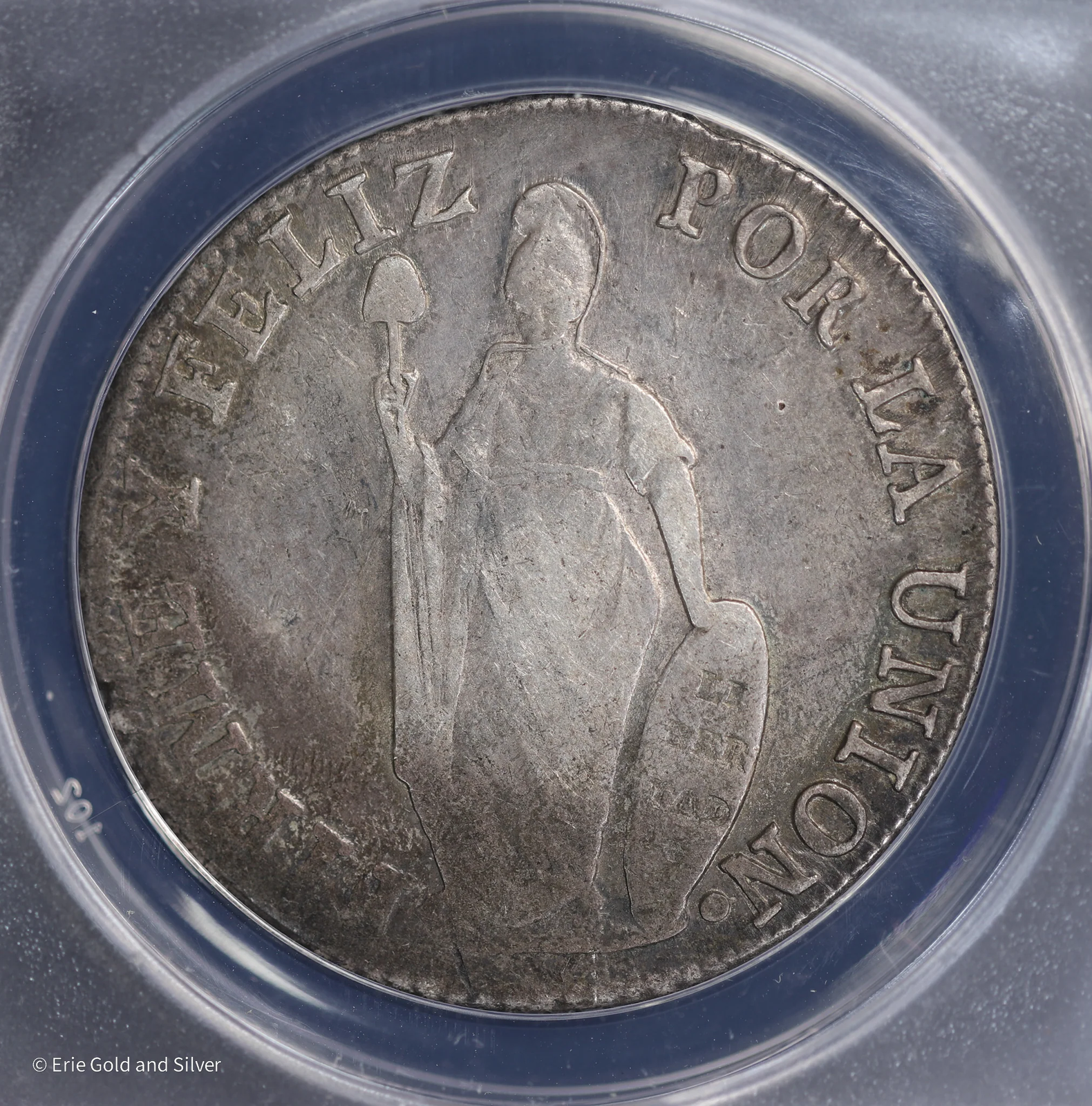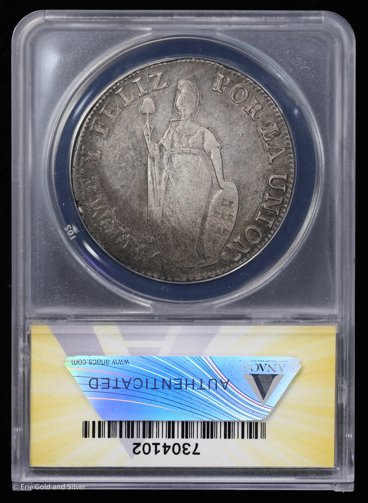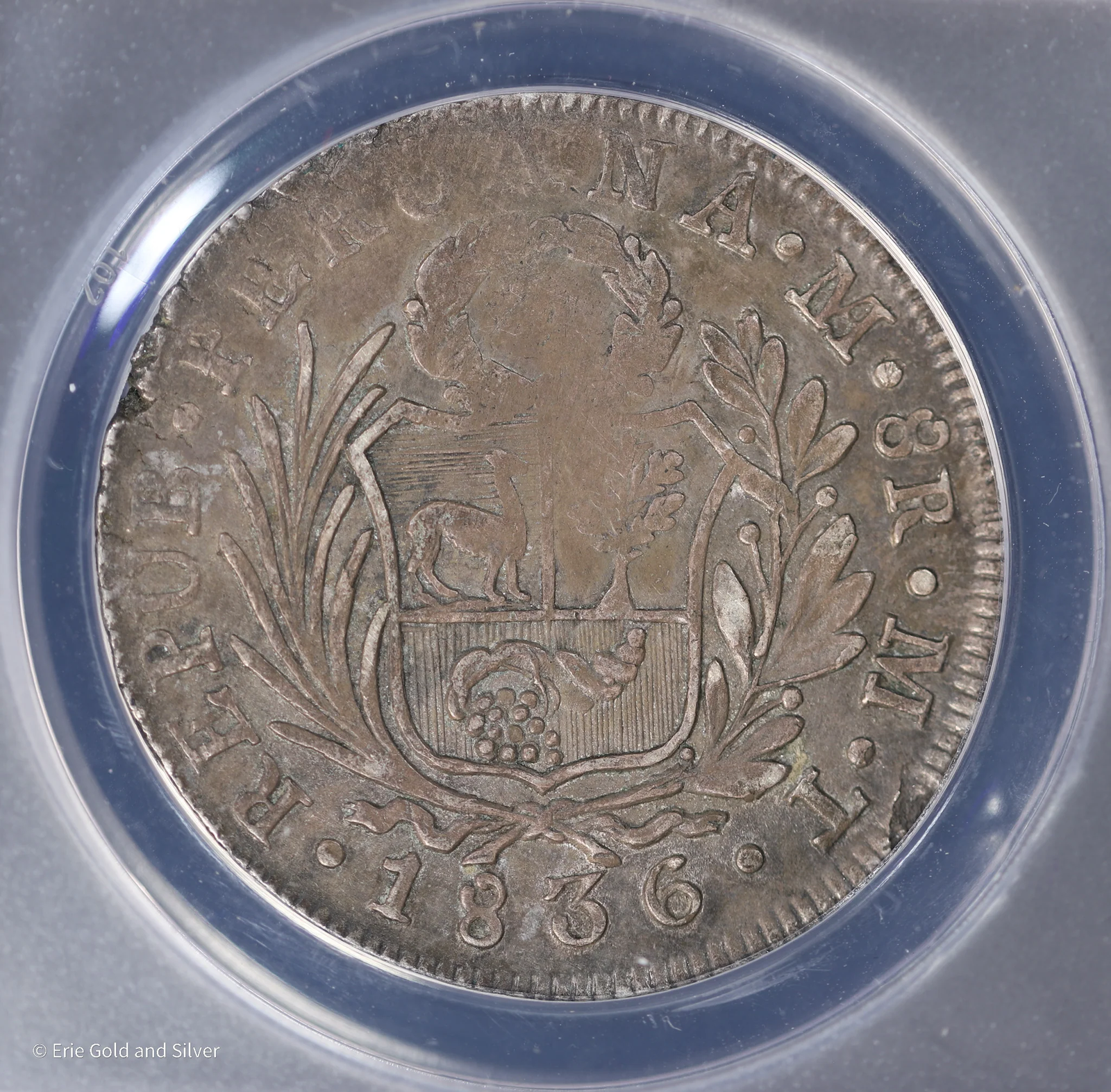 1836 L, MT 8R Peru Silver 8 Reales ANACS VF 30