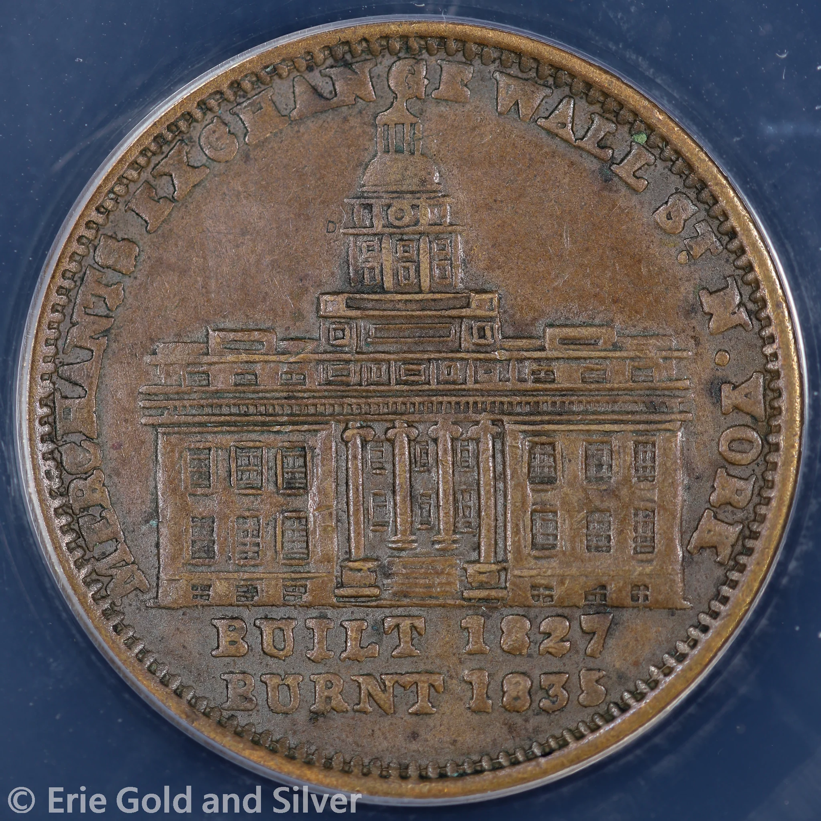 1837 Merchants Exchange Hard Times Token ANACS EF 45 | HT-293 XF