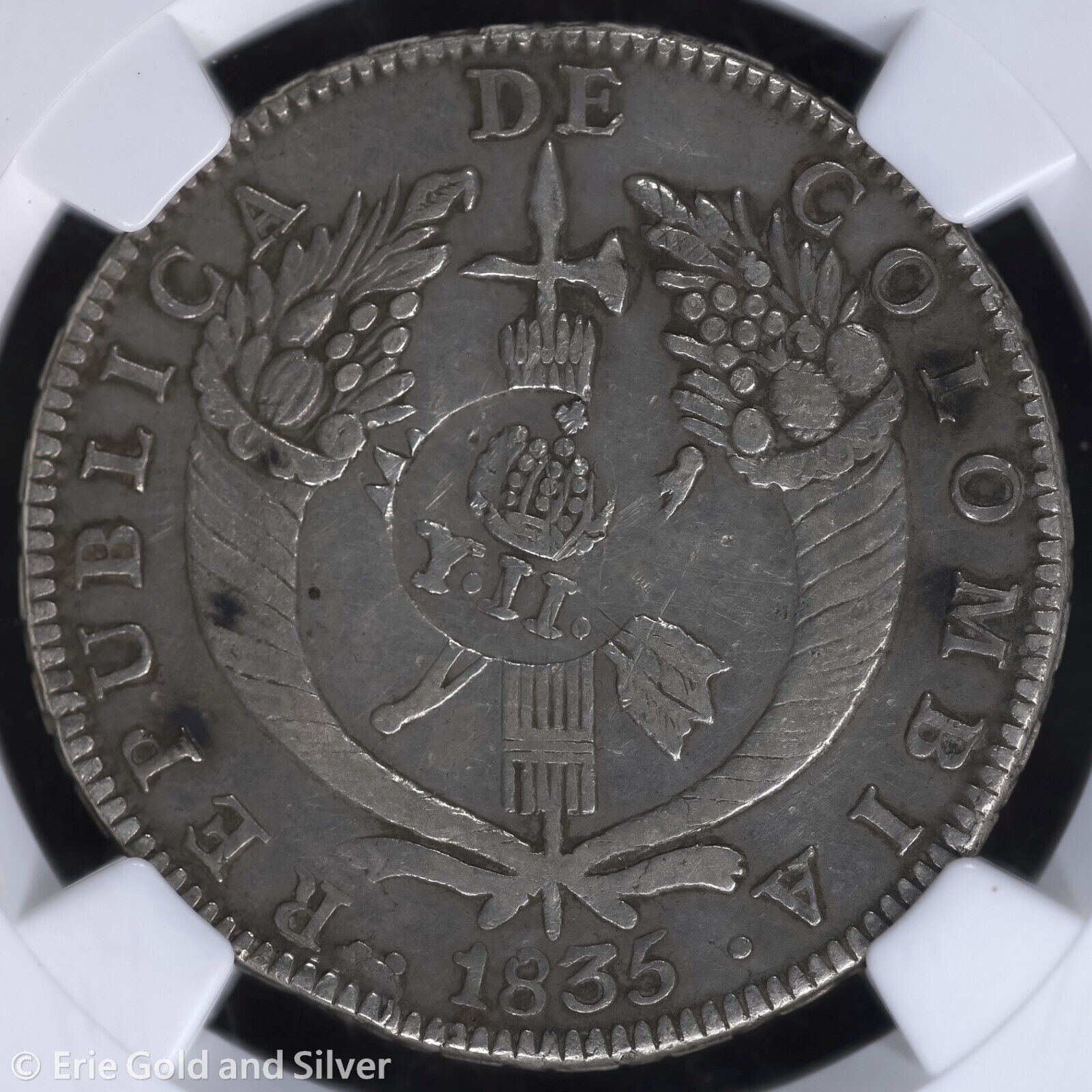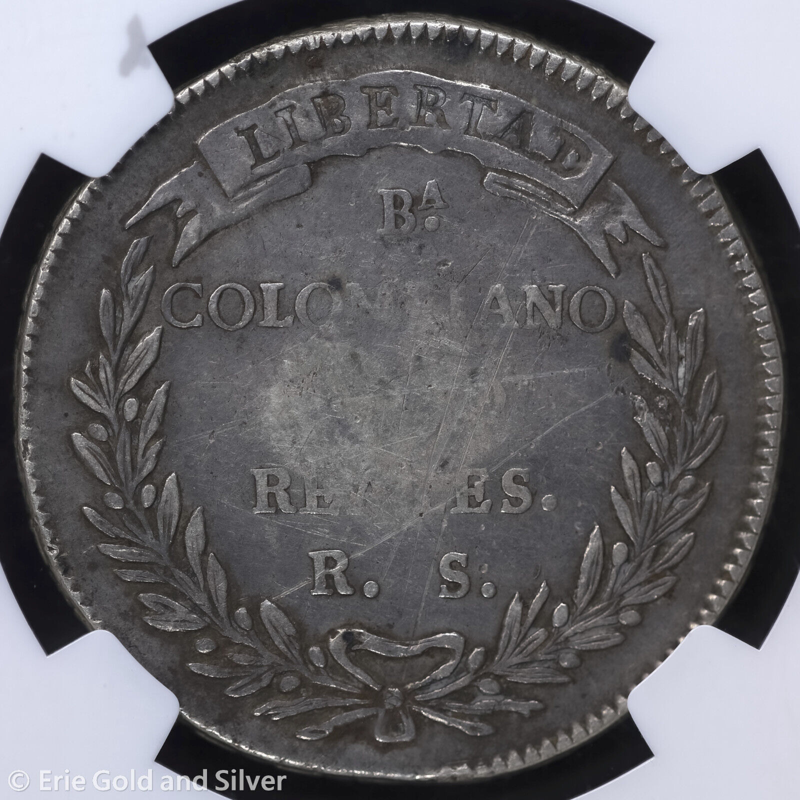 (1837) Philippines 8 Reales T6 C/S on Colombia 8R NGC XF Details