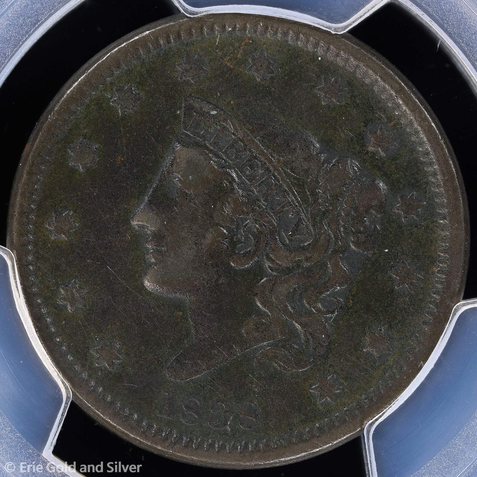 1838 1C Liberty Head Large Cent PCGS Genuine F Detail