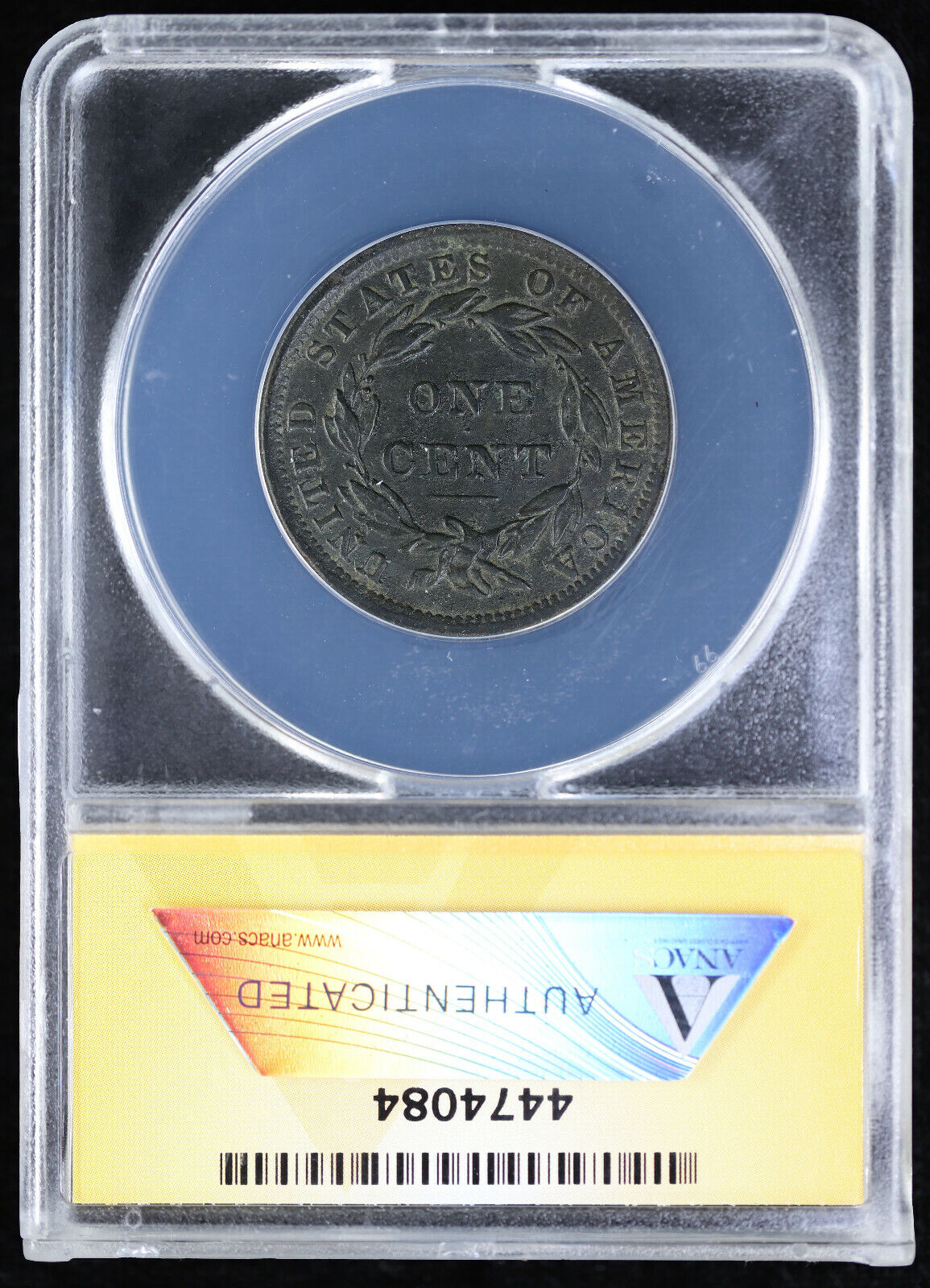 1838 Large Cent 1C ANACS EF 45 Details