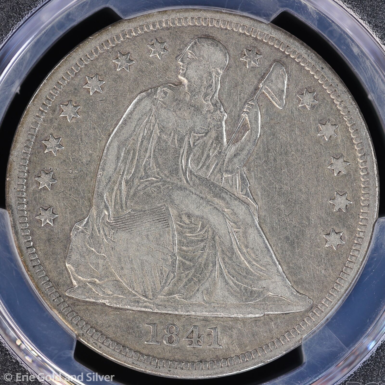 1841 $1 Seated Liberty Silver Dollar PCGS Genuine VF Detail