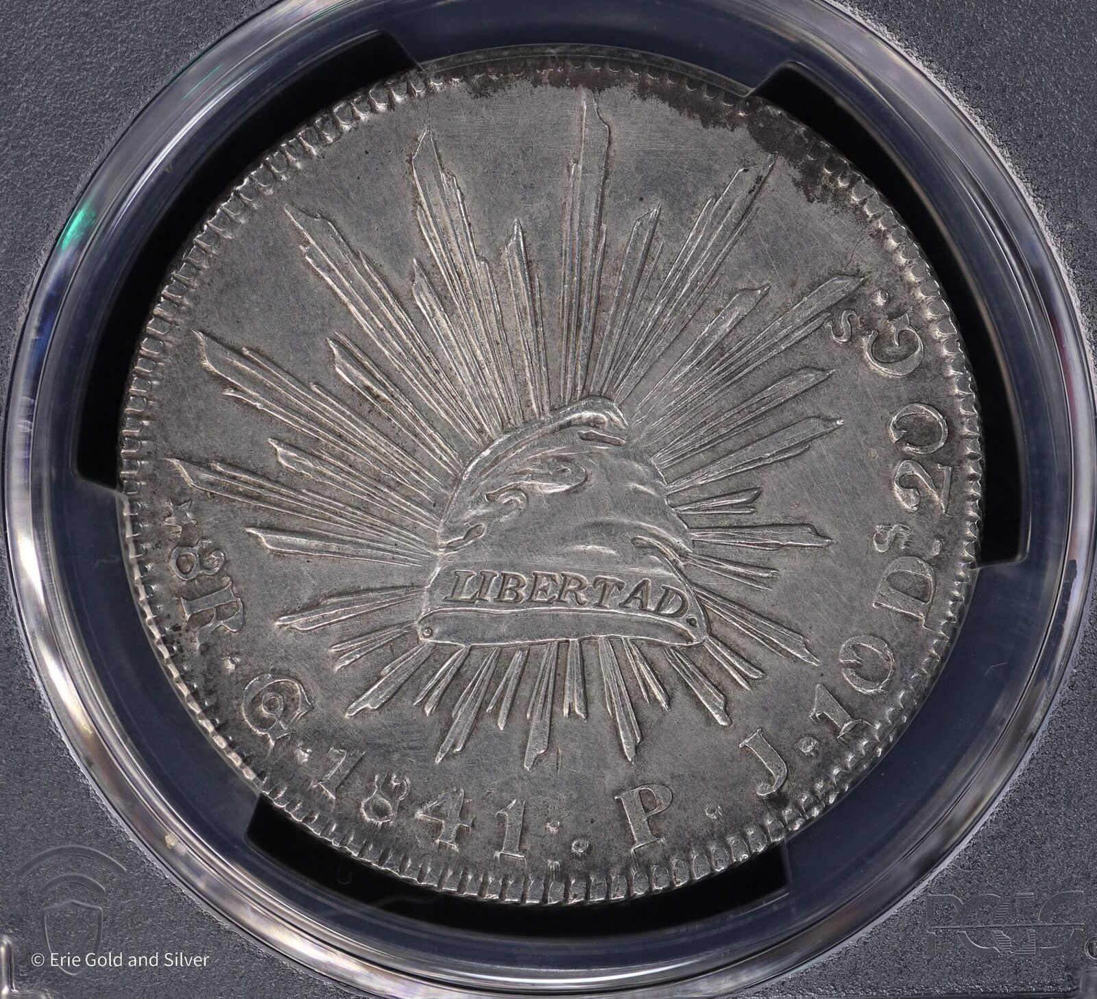 1841-Go PJ Mexico Silver 8 Reales Guanajuato Cap & Rays PCGS AU Detail