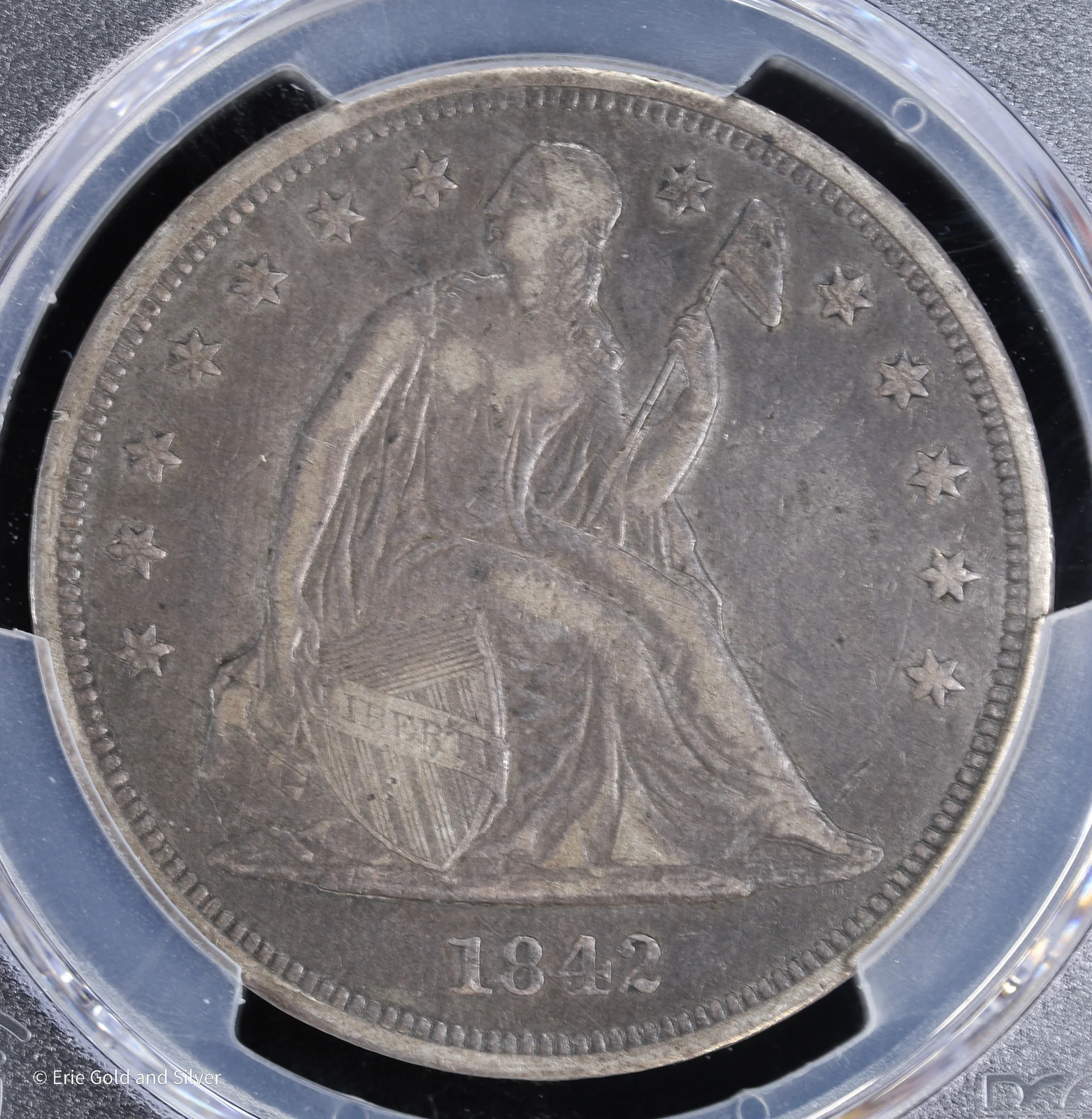 1842 $1 Seated Liberty Silver Dollar PCGS Genuine VF Detail