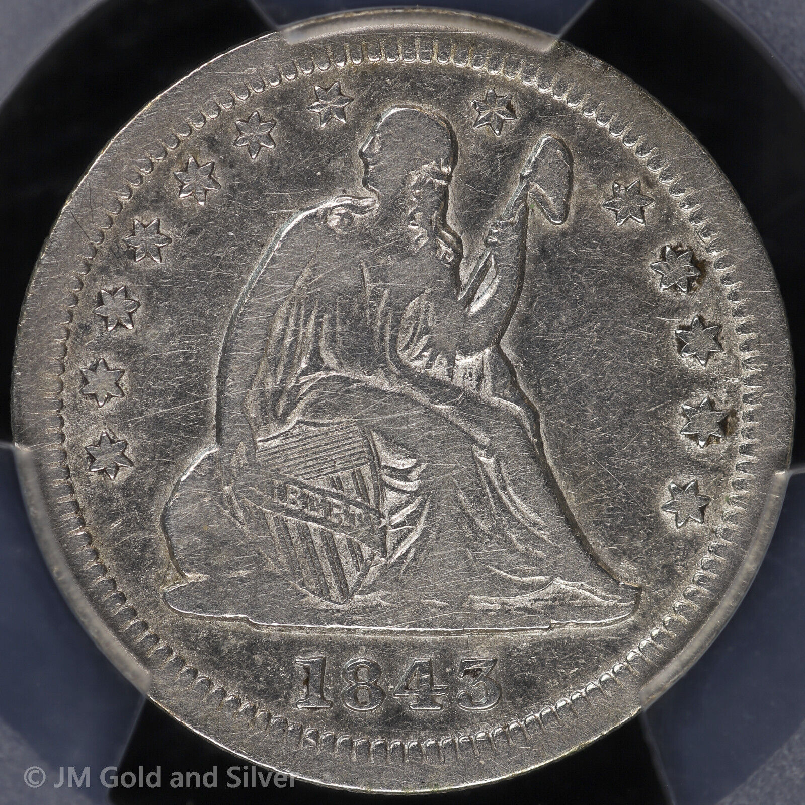 1843-O 25C Seated Liberty Quarter PCGS Genuine F Detail | Large O FS-501