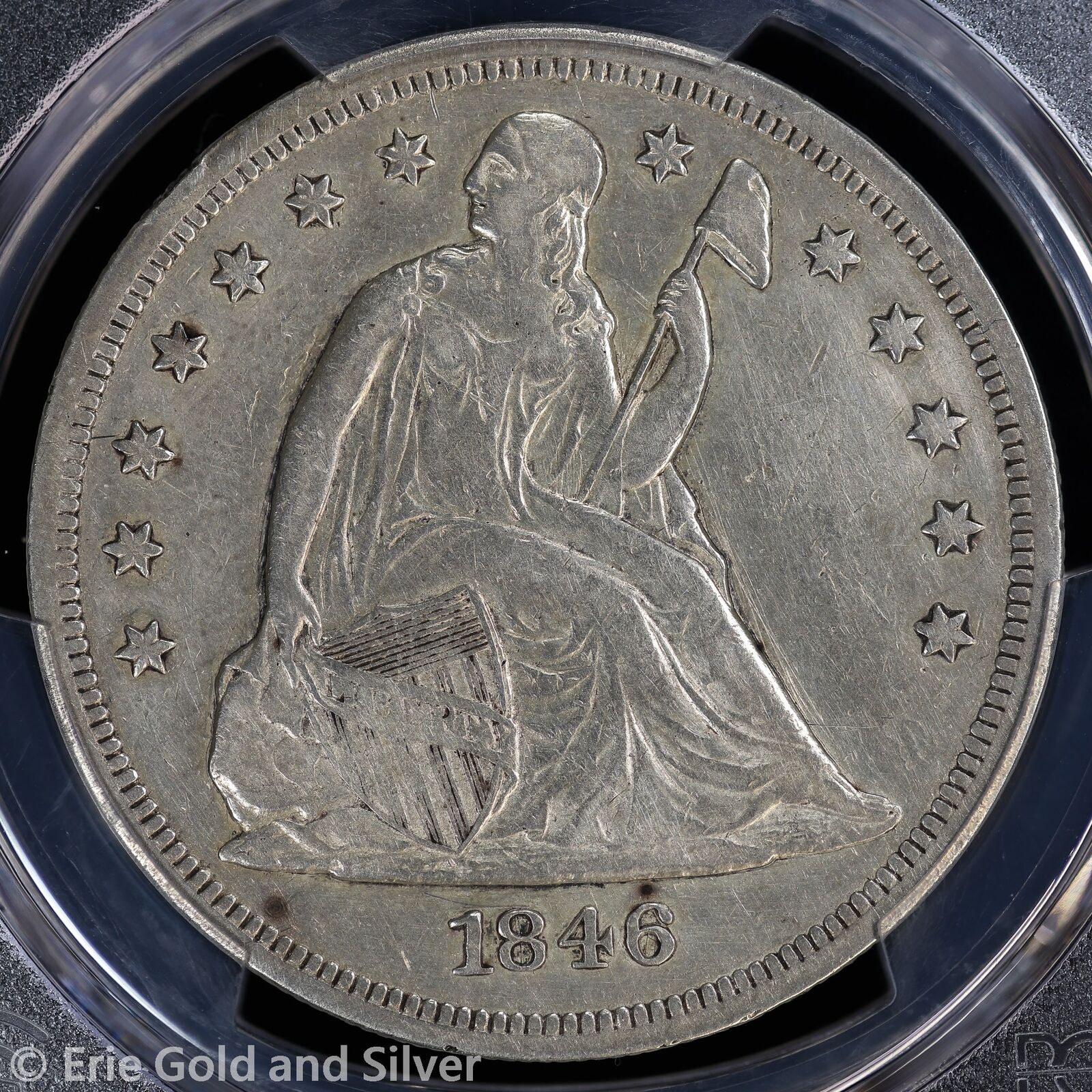 1846 $1 Seated Liberty Silver Dollar PCGS Genuine AU Detail