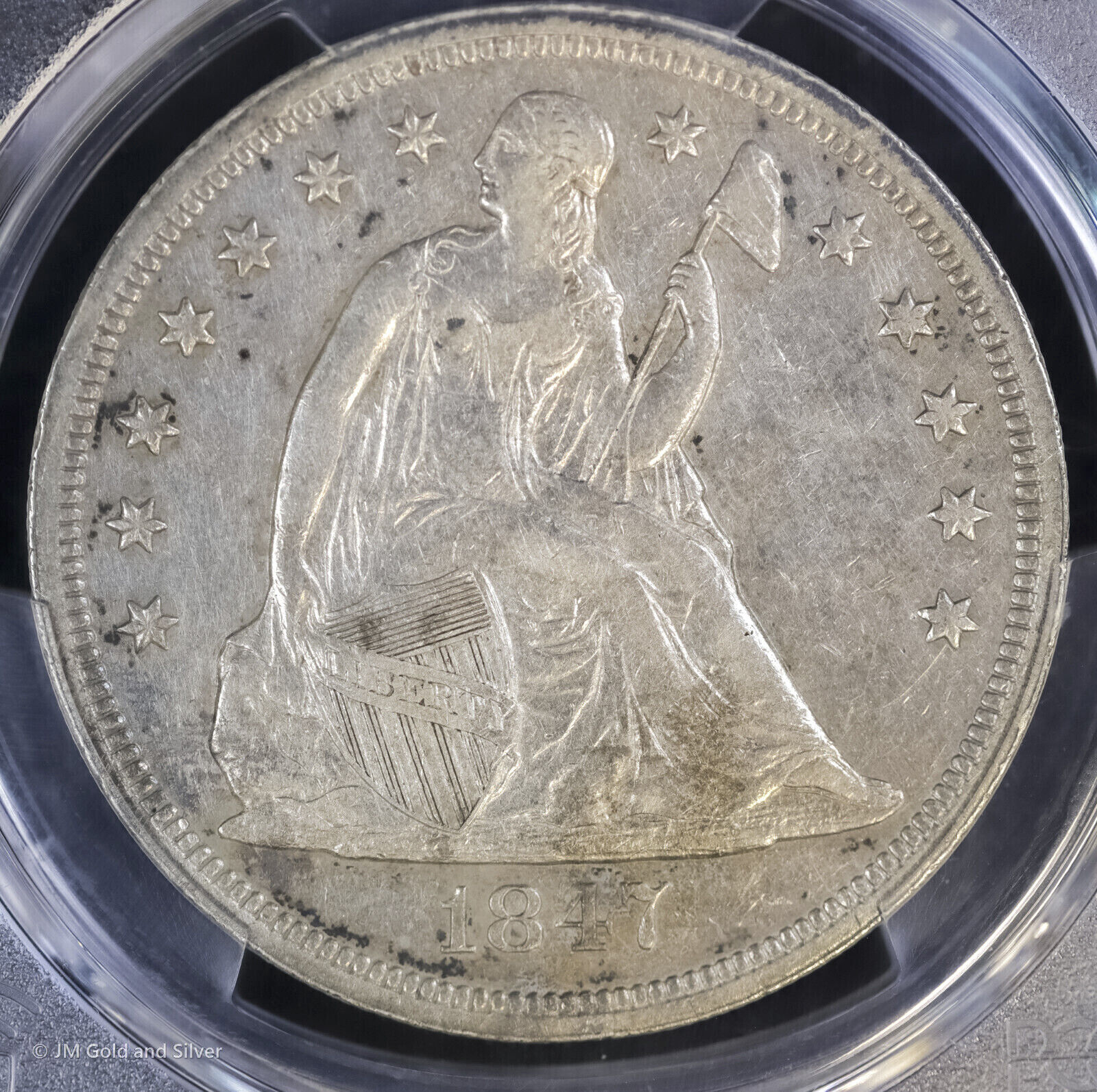 1847 $1 Seated Liberty Silver Dollar PCGS AU Detail (Cleaned)