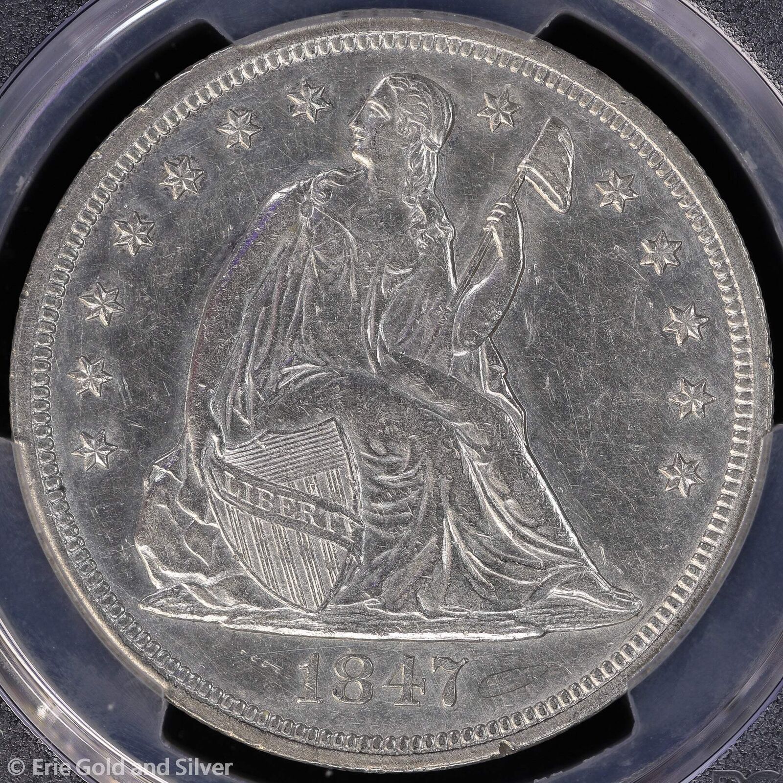 1847 $1 Seated Liberty Silver Dollar PCGS Genuine AU Detail