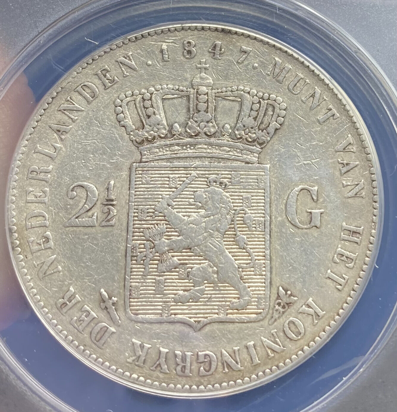 1847 Kingdom of Netherlands 2.5 Gulden ANACS XF 40 Details (Cleaned) | 2 1/2 Lion
