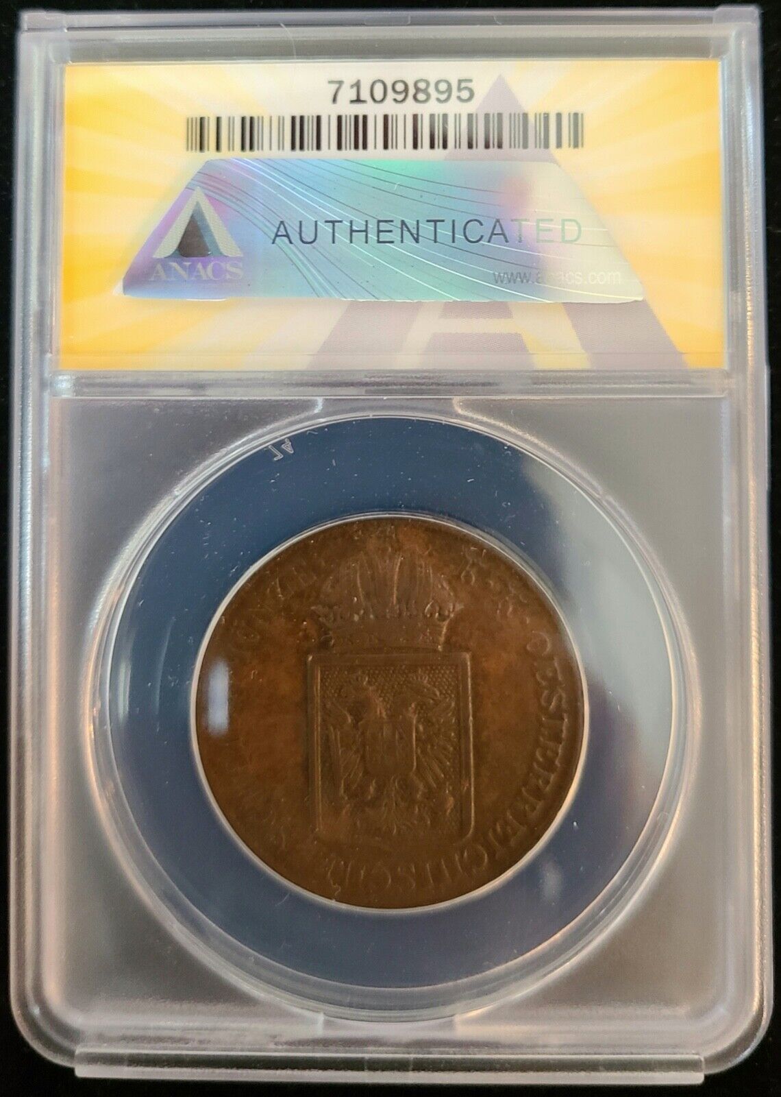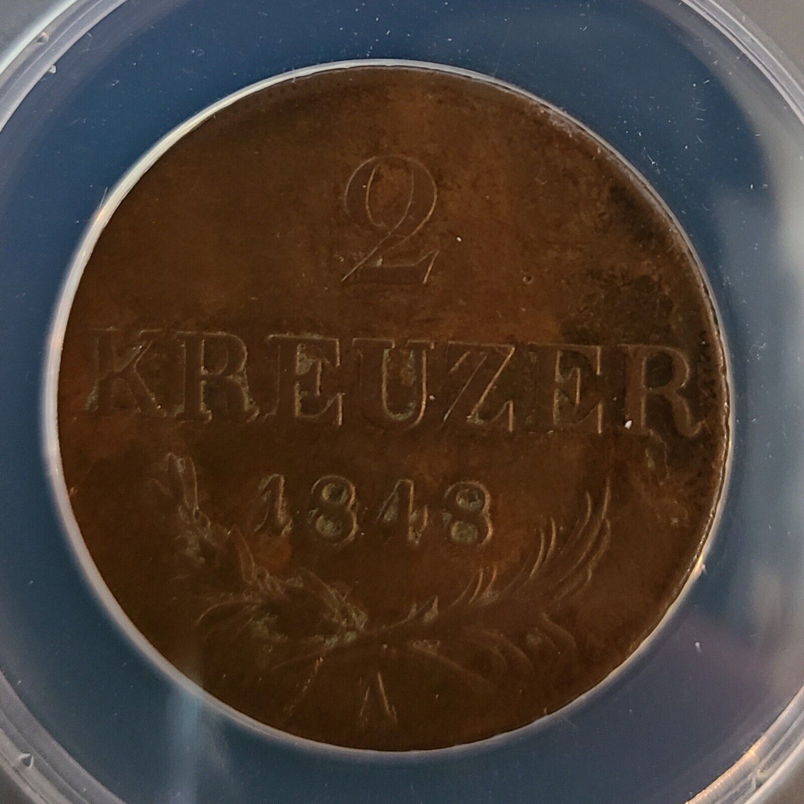 1848 A Austria 2 Kreuzer Copper ANACS XF 40 Franz Joseph Revolution Scheidemünze
