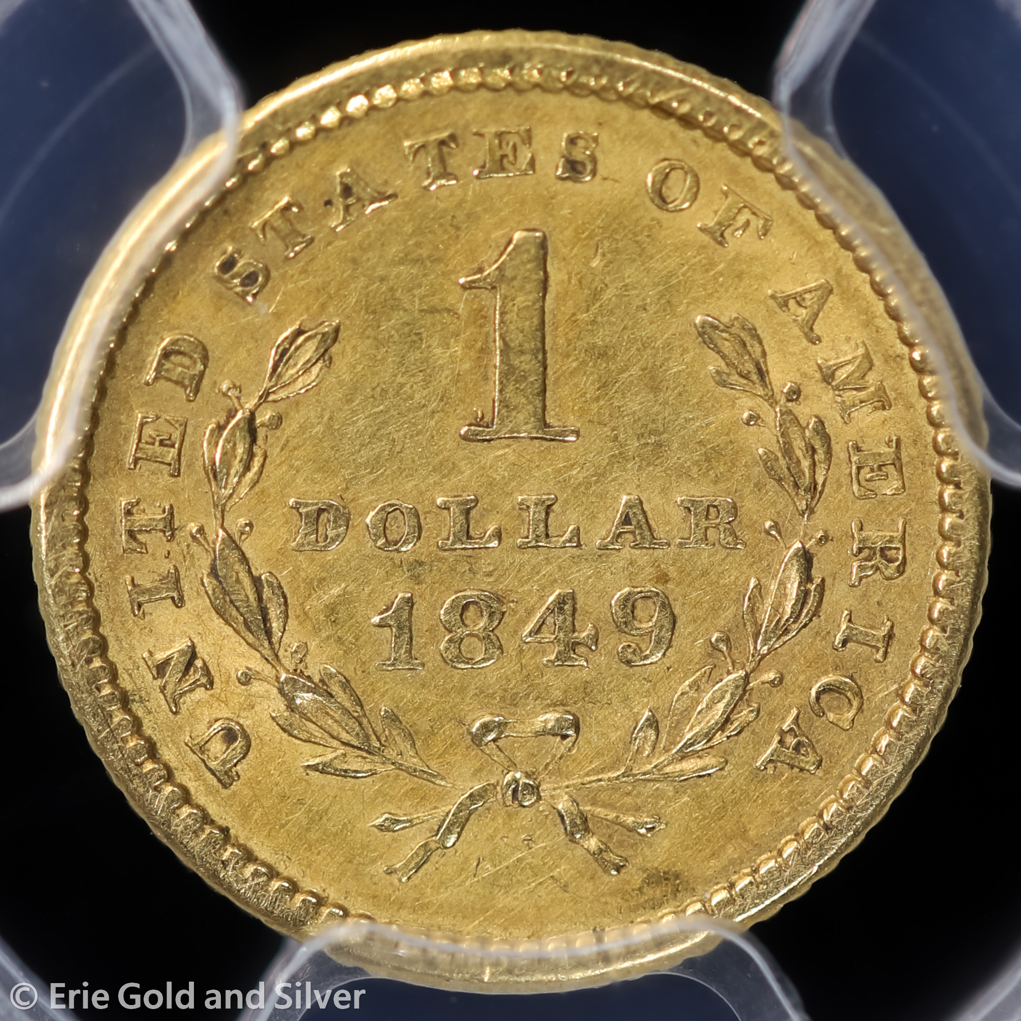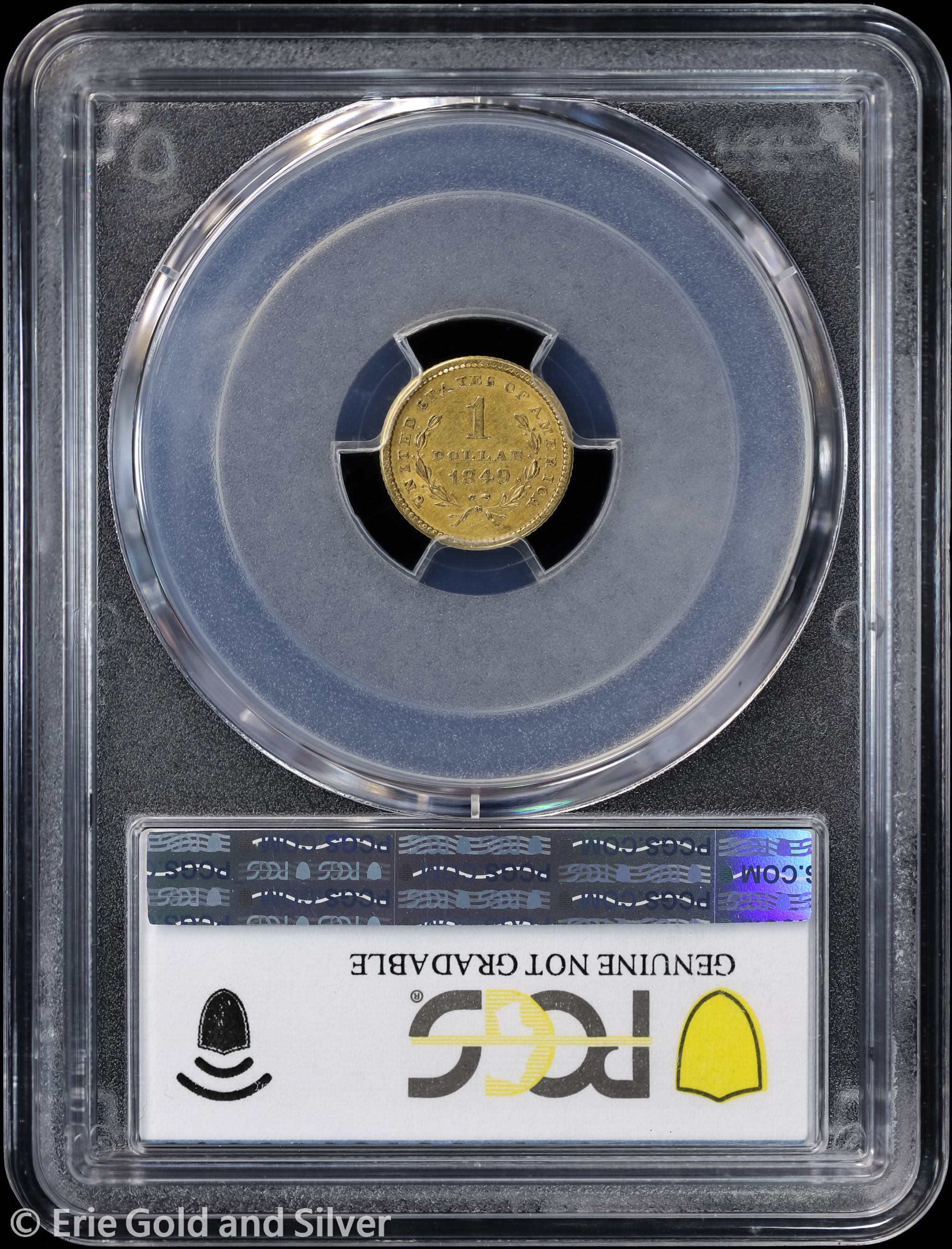 For sale is a 1849 Liberty Head Gold Dollar. Certified / graded by PCGS at Genuine AU Detail.