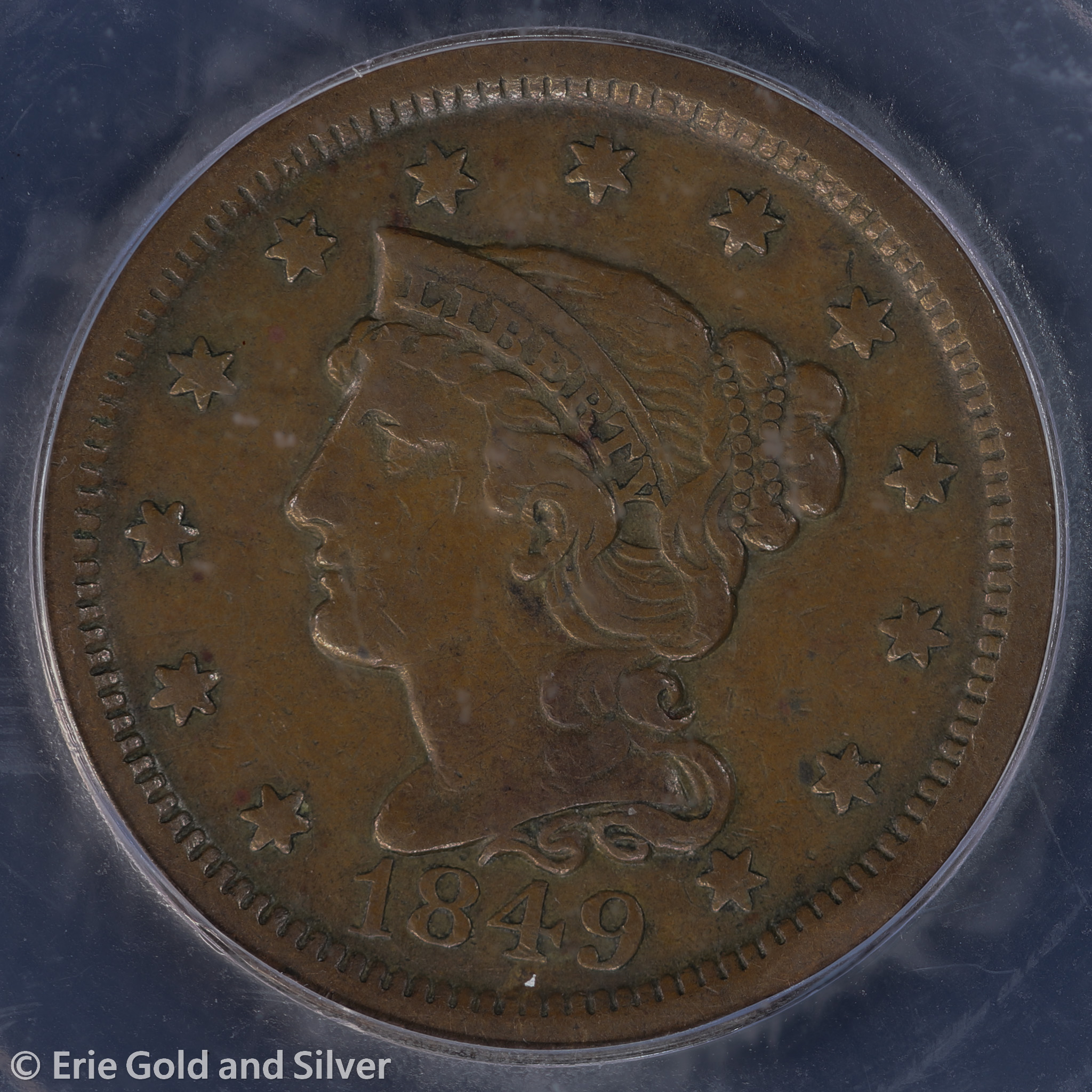 For sale is a 1849 Braided Hair Large Cent. Certified / graded by ICG at VF 35.