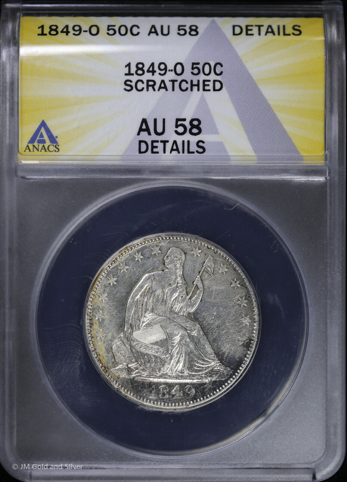 1849 O 50c Seated Liberty Half Dollar ANACS AU 58 Details | About Uncirculated