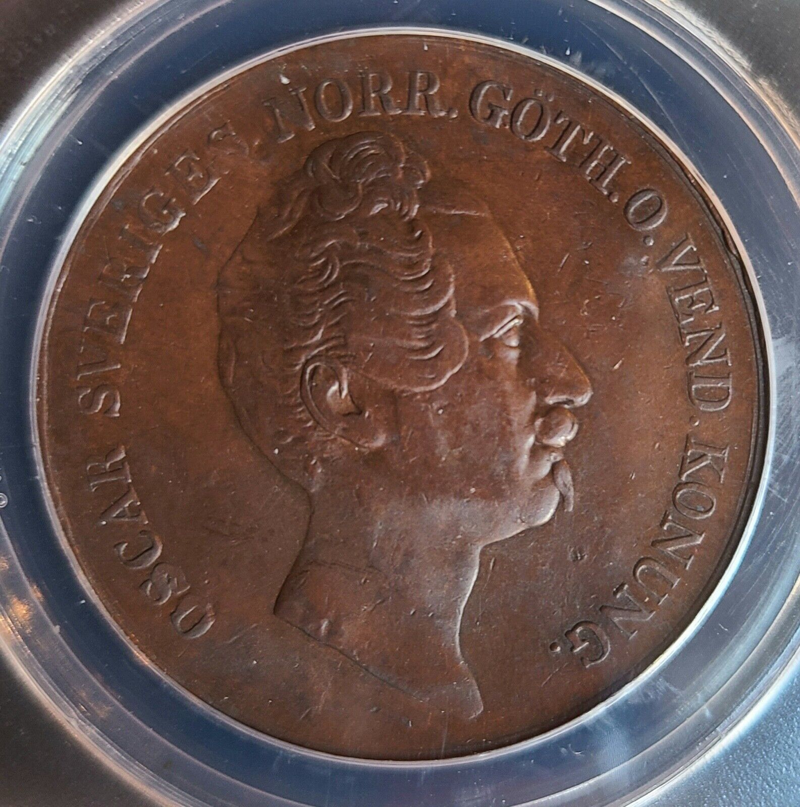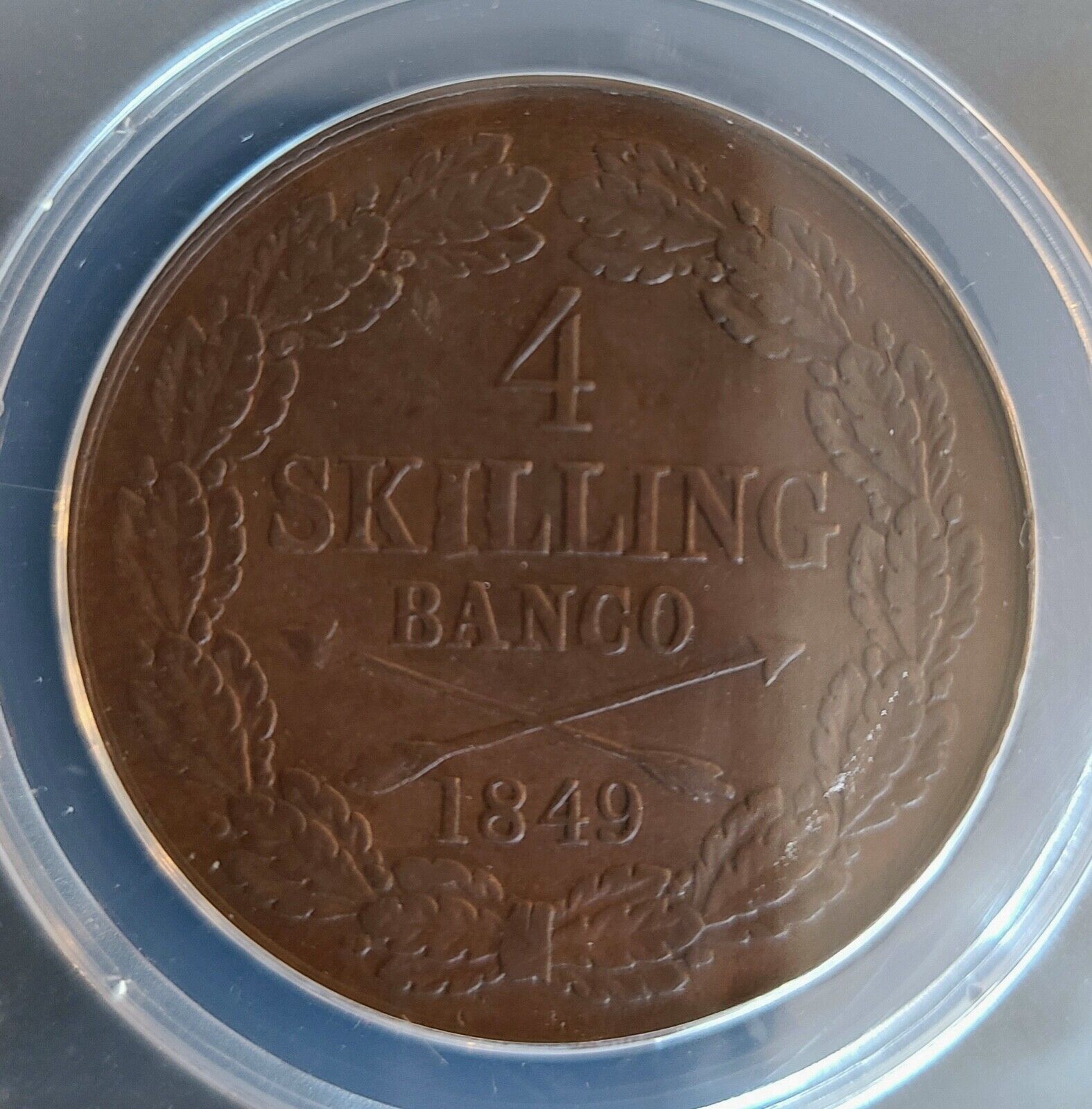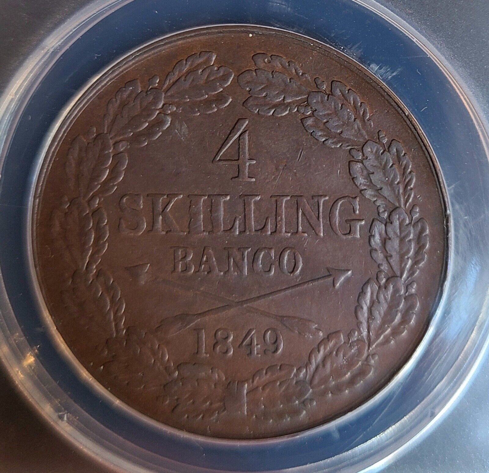 1849 Sweden 4S 4 Skilling Large Copper Coin ANACS XF 45 Oscar I Sveriges Konung