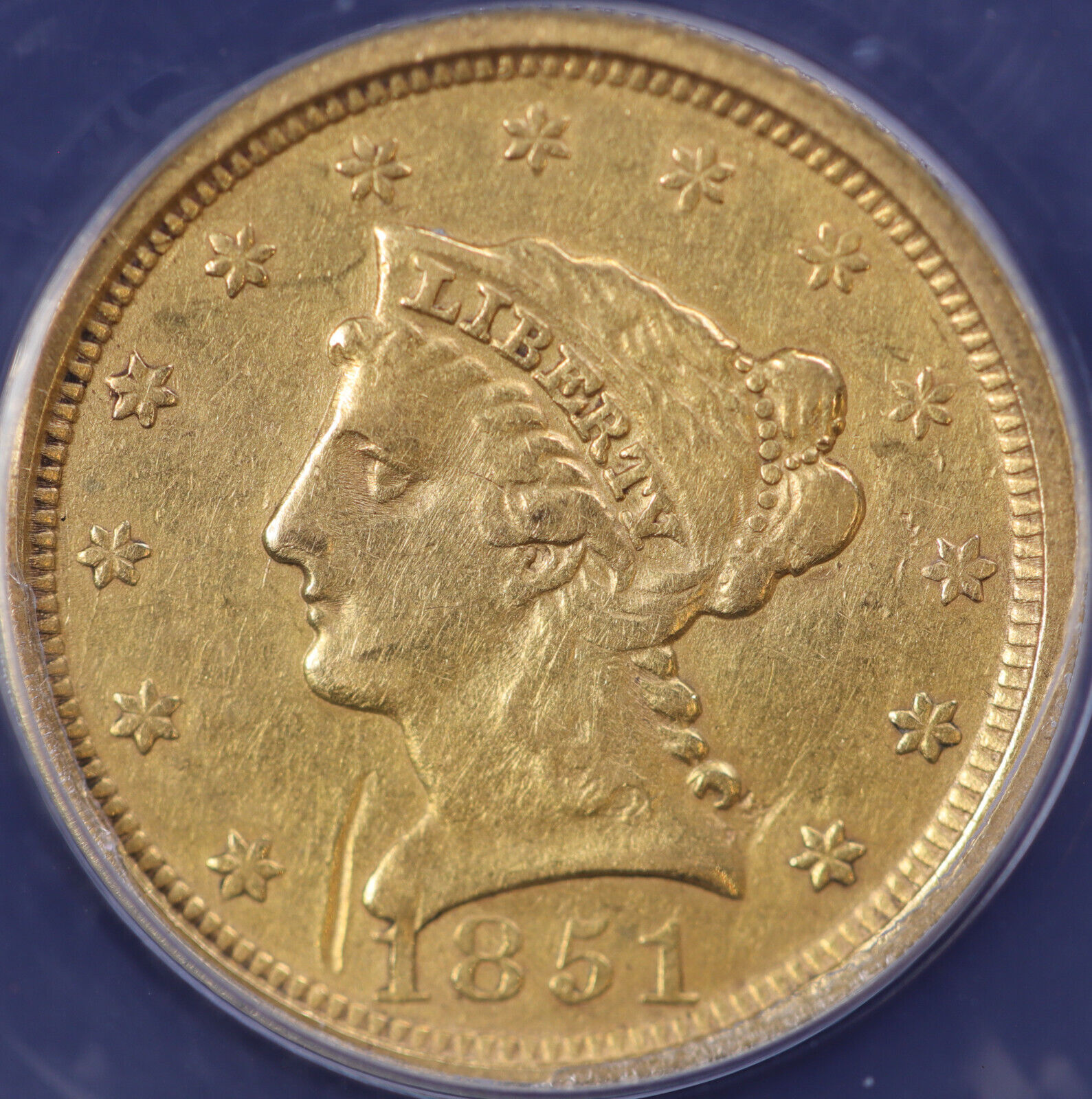 1851 $2.50 Gold Liberty Head Quarter Eagle ANACS AU 50