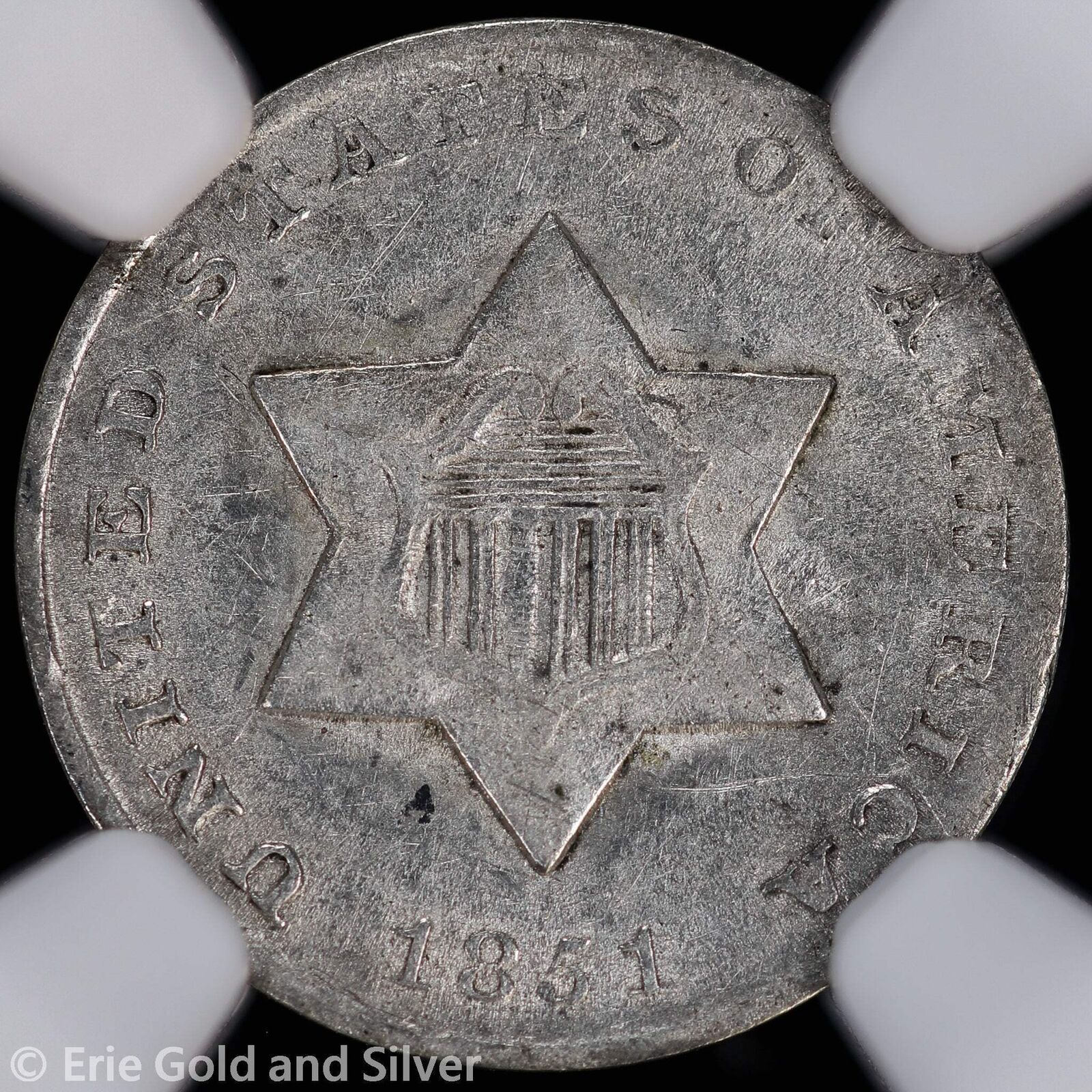 1851 3CS 3-Cent Silver NGC AU Details | Trime