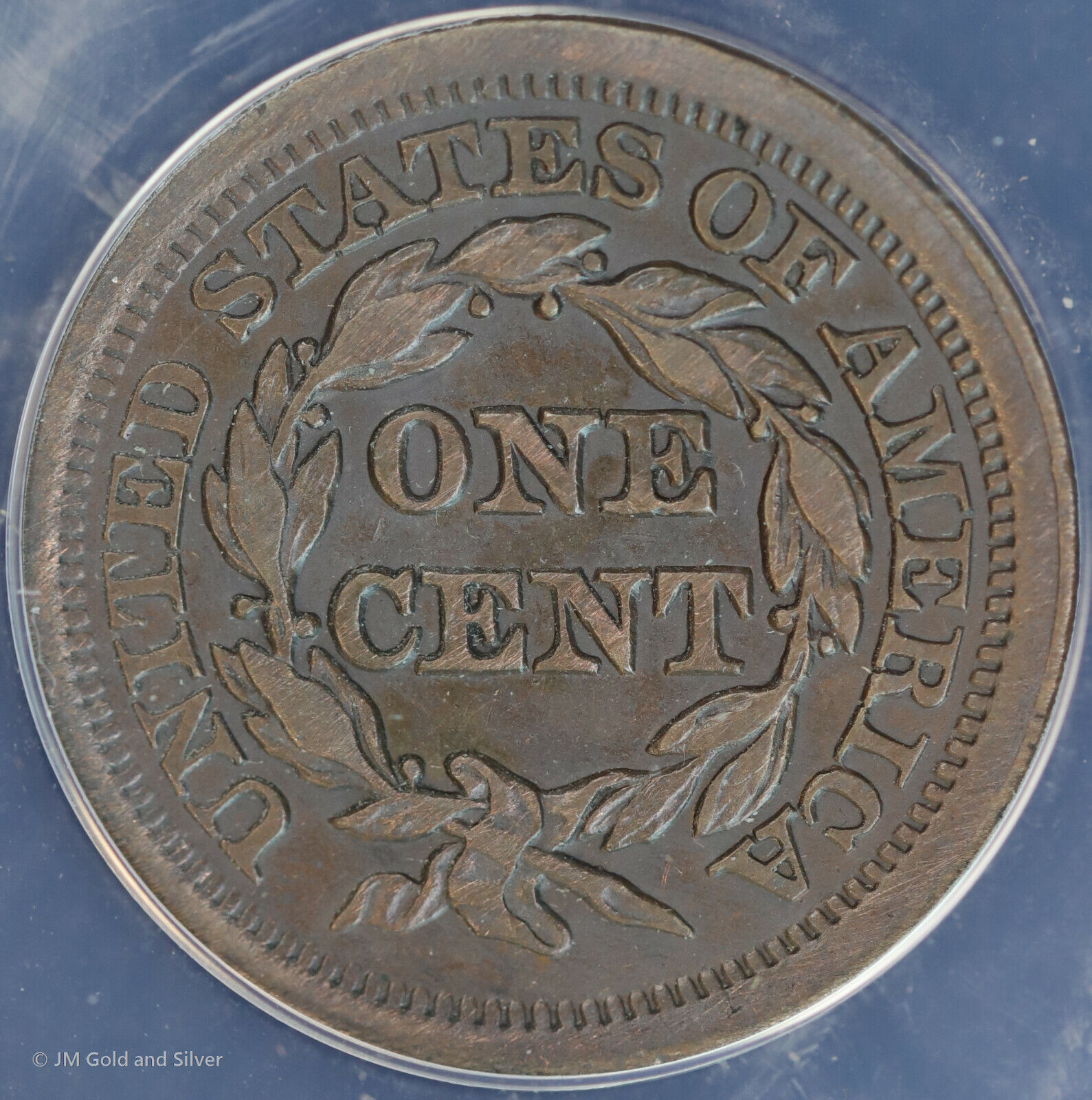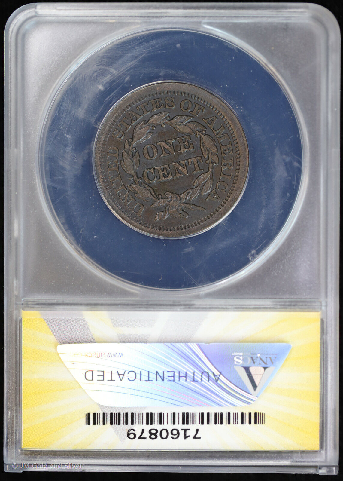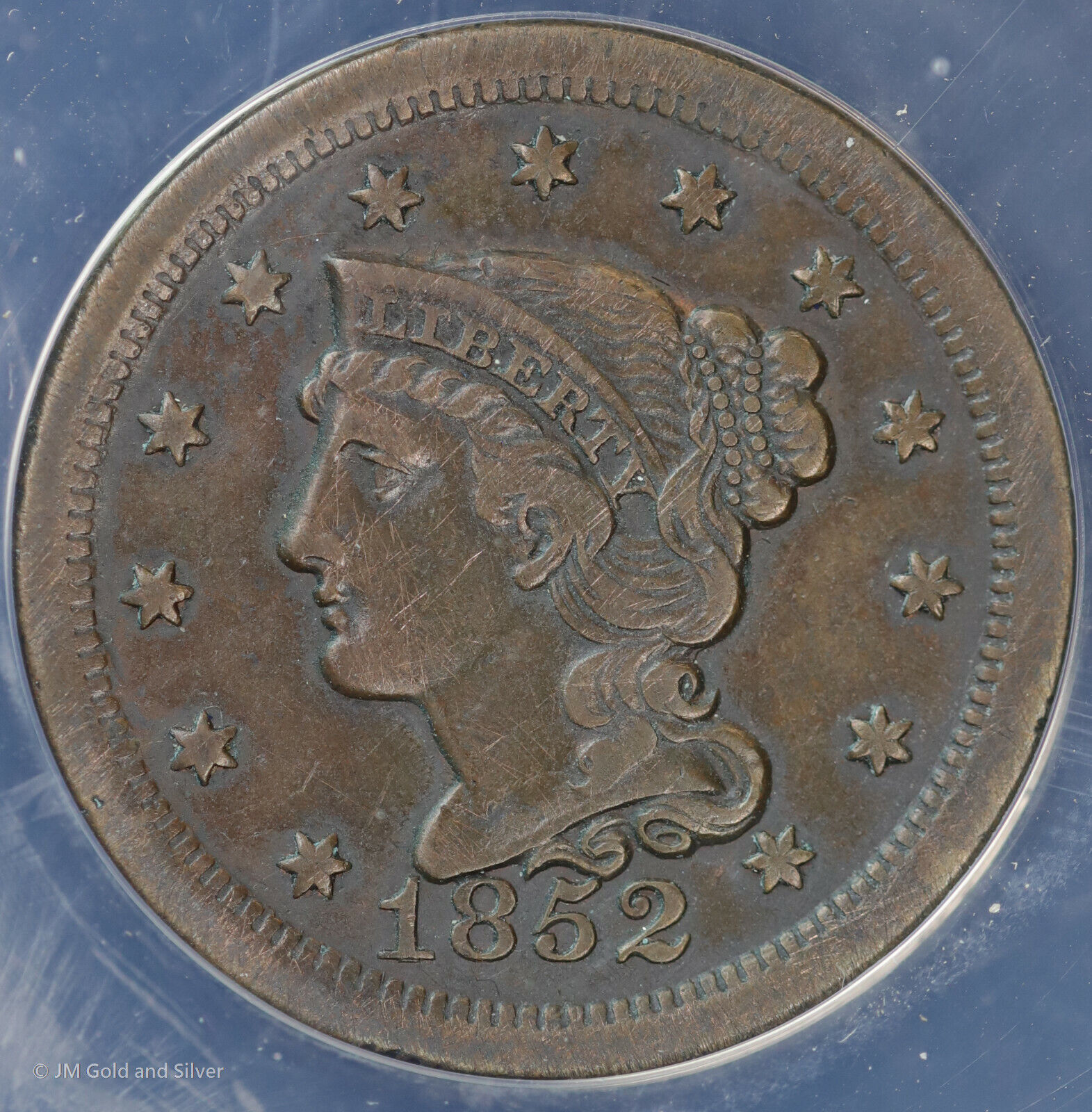 1852 1C Braided Hair Large Cent ANACS VF 35 Details (Scratched)